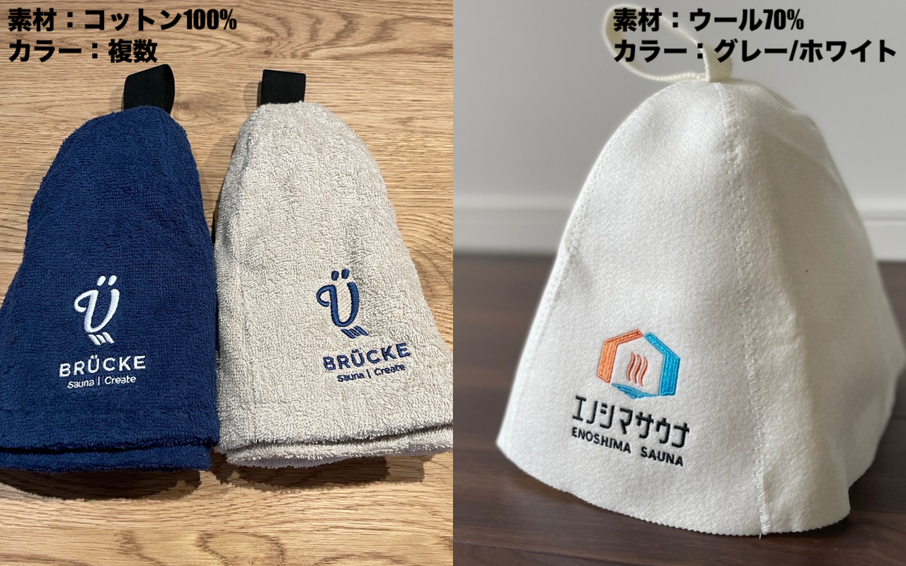 また、オリジナルデザインのタオルセットや、ターバン型のサウナハット、その他特殊な形をしたサウナハットなども対応可能ですので、ぜひお気軽にお問い合わせください。