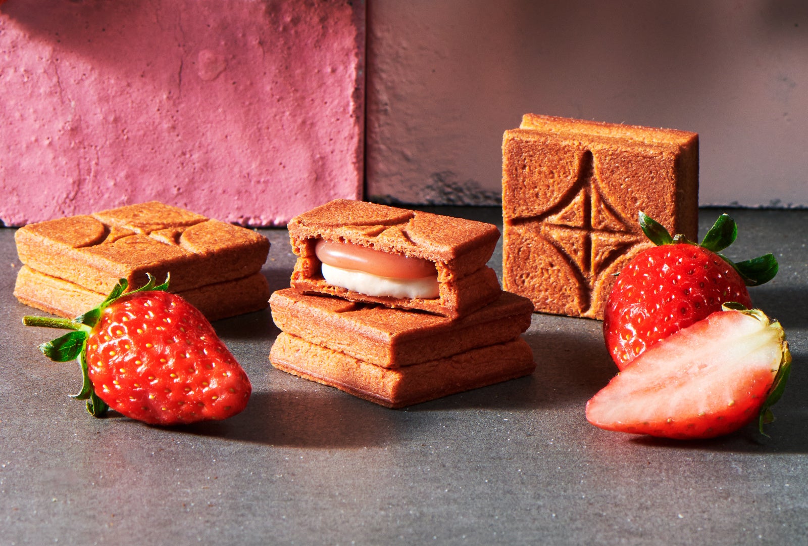 今回は、季節商品「あまおう苺」がオススメ!あまおう苺ジャムを練り込んだバタークリームと、あまおう苺の濃縮果汁を使用したバターキャラメル。口に入れる直前に漂うあまおう苺のふわっとした香り、甘みと酸味が調和したバターとキャラメルの風味が楽しめる華やかなバターサンドです♪