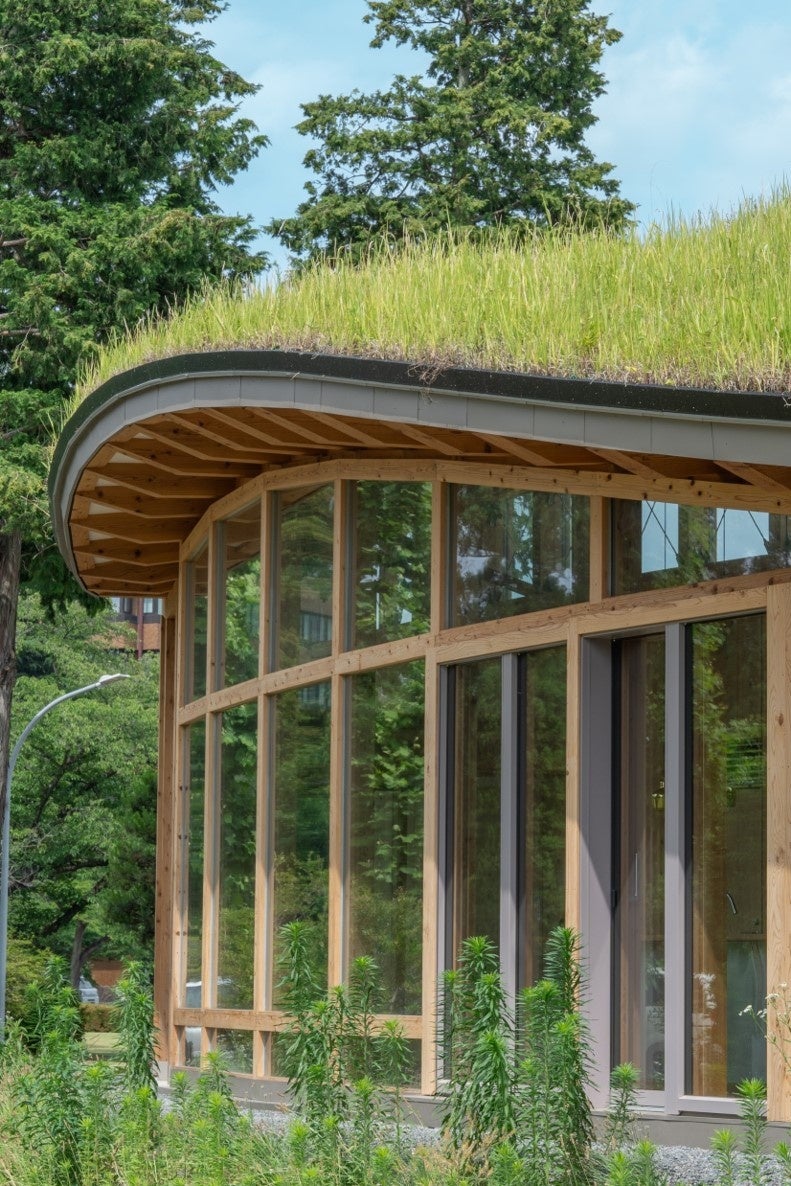 弊社は、屋上緑化部分の設計協力・施工を担当しました。河原の風景を想起させつつ四季を感じられる植物の選定や、曲線屋根にも対応できる植栽基盤の提案を行い、環境面・視覚面でより充実した屋上緑化を実現しました。