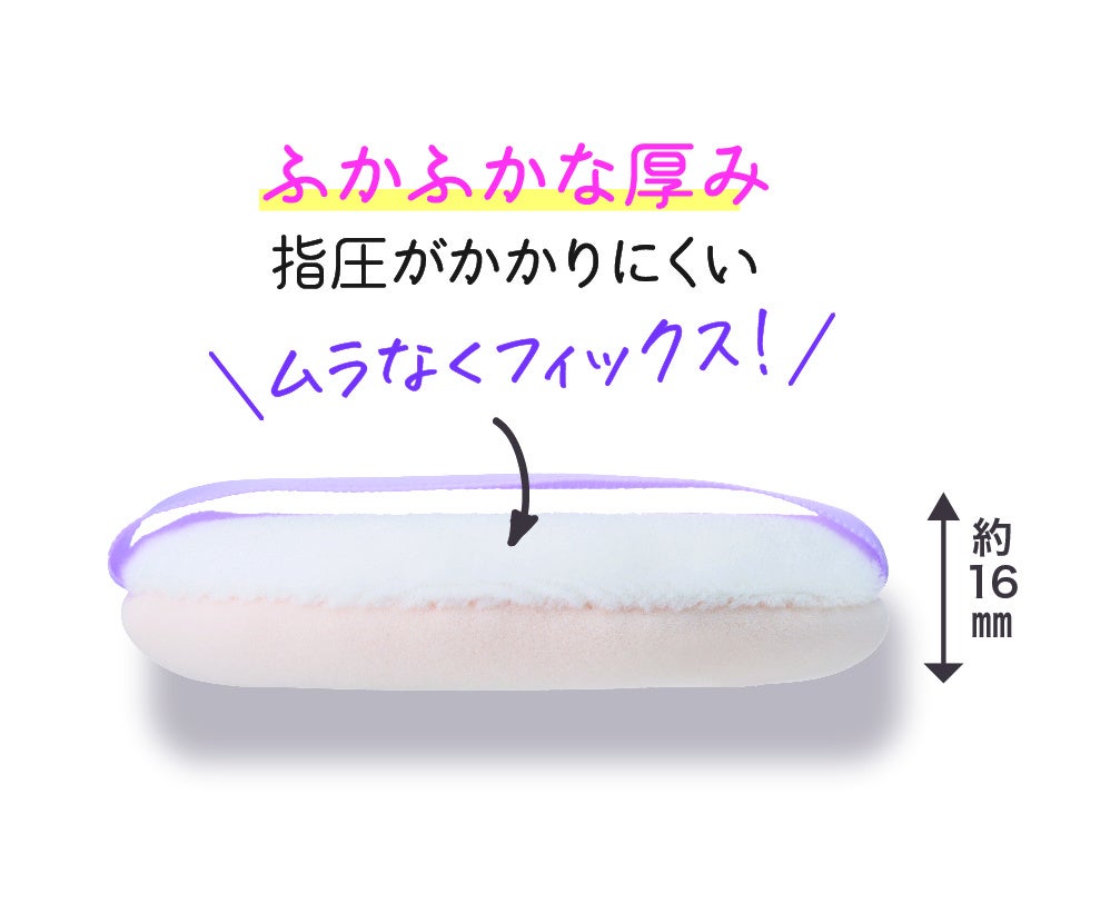 ふかふかでやわらかいパフは、約16㎜の厚みを持たせました。