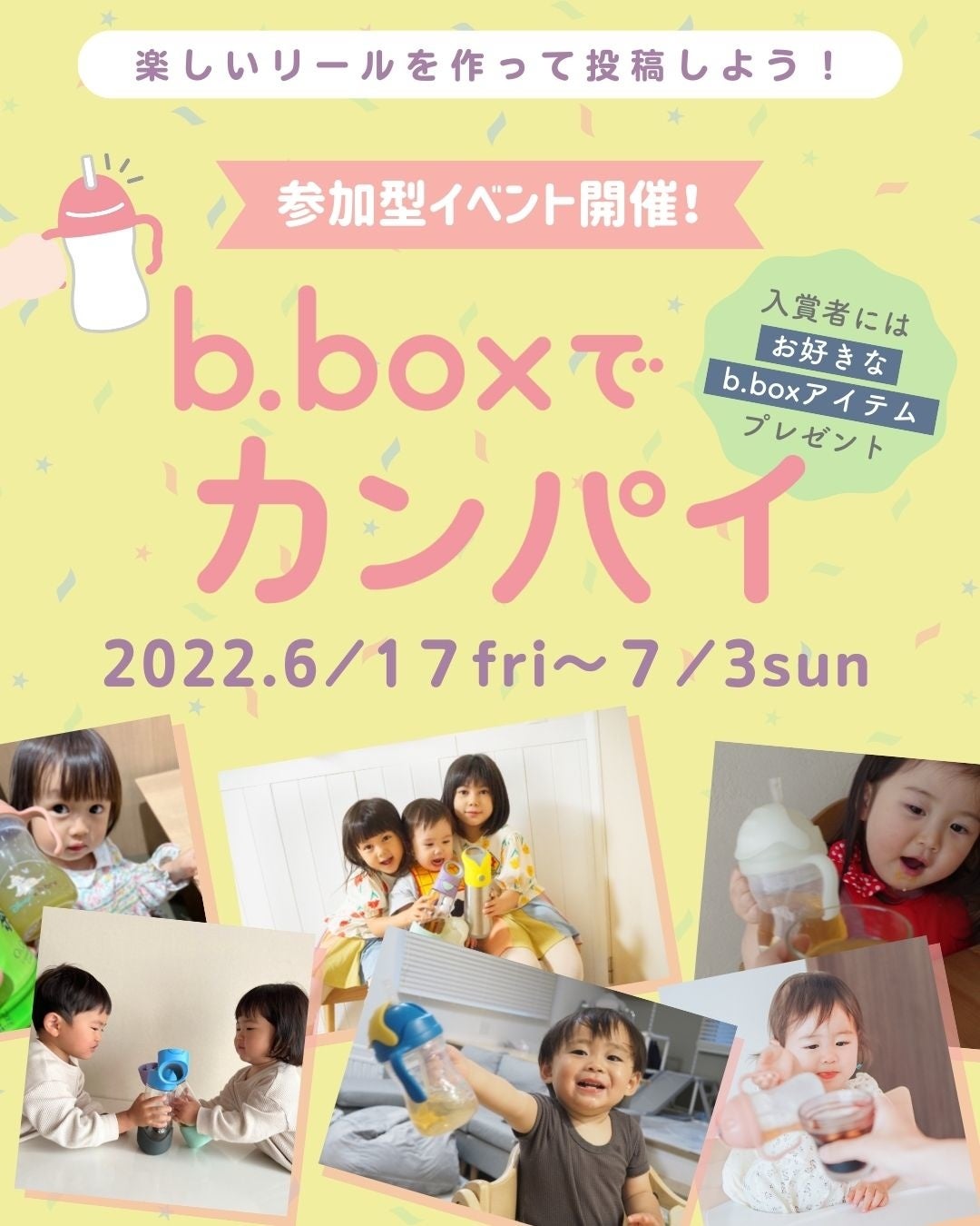 普段インスタグラム投稿で、全国の沢山のママ・パパがビーボックスアイテムを使用して頂いている写真を拝見しているなかで、SNSを通してビーボックスファミリーの方と何か一緒に楽しめるイベントはないかと考えていました。その思いをカタチにすべく、みんなで楽しく盛り上がれる参加型イベント「b.boxでカンパイ」を開催いたします。