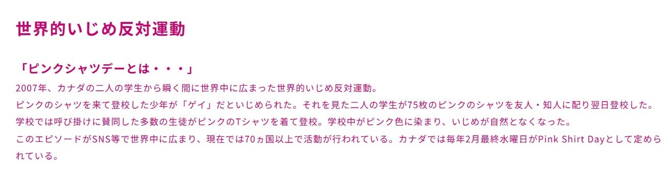 ぜひ、共にピンクシャツデーを通して、いじめのない世界をめざしましょう。