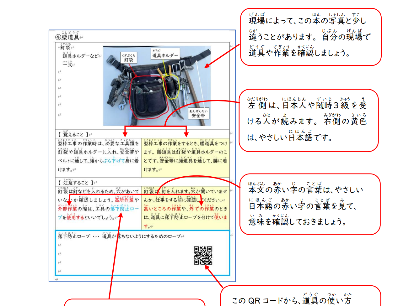 ✓ 「やさしい日本語」を使っても難しい語彙は、QRコードを使って動画で確認可能
