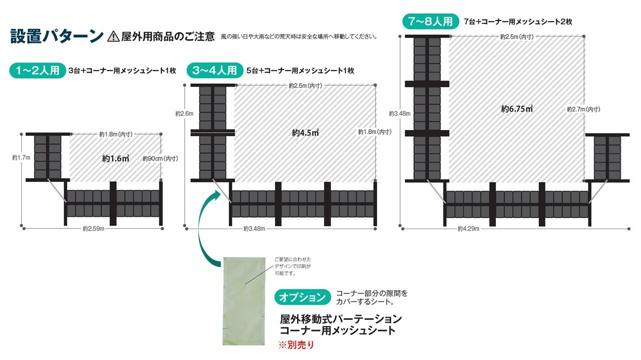 ●別売りのコーナー用メッシュシートを使用することで、ブースを作る際の目隠し効果が向上。