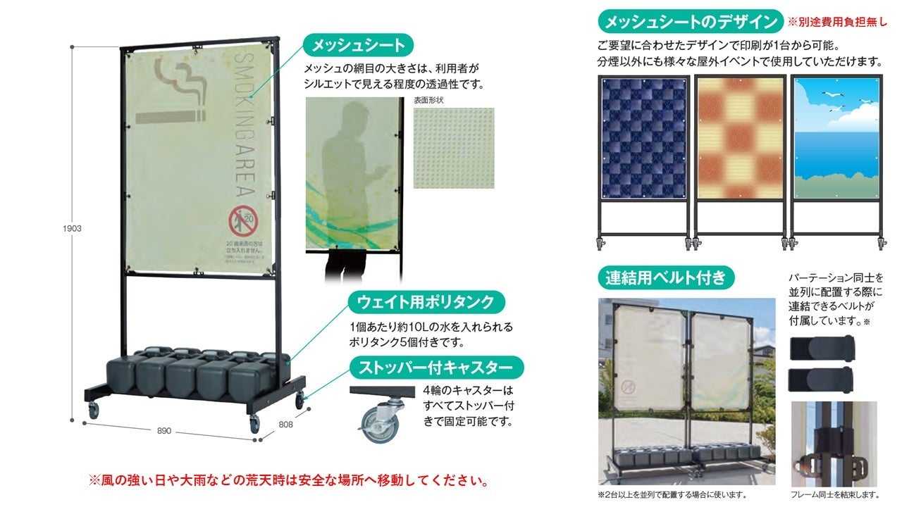 屋外イベント時の間仕切りや分煙対策に最適な「屋外移動式パーテーション」2025年2月1日発売