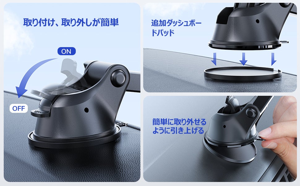 【片手操作】より快適な操作のために、リリースボタンをアップグレードし、片手だけで押すことができ、クランプアーム1Sは素早く開きます。クレードルに携帯電話を置くと、衛星ナビゲーションやハンズフリー通話などが簡単にできます。すべての操作が片手でできるので、より便利で安全です。