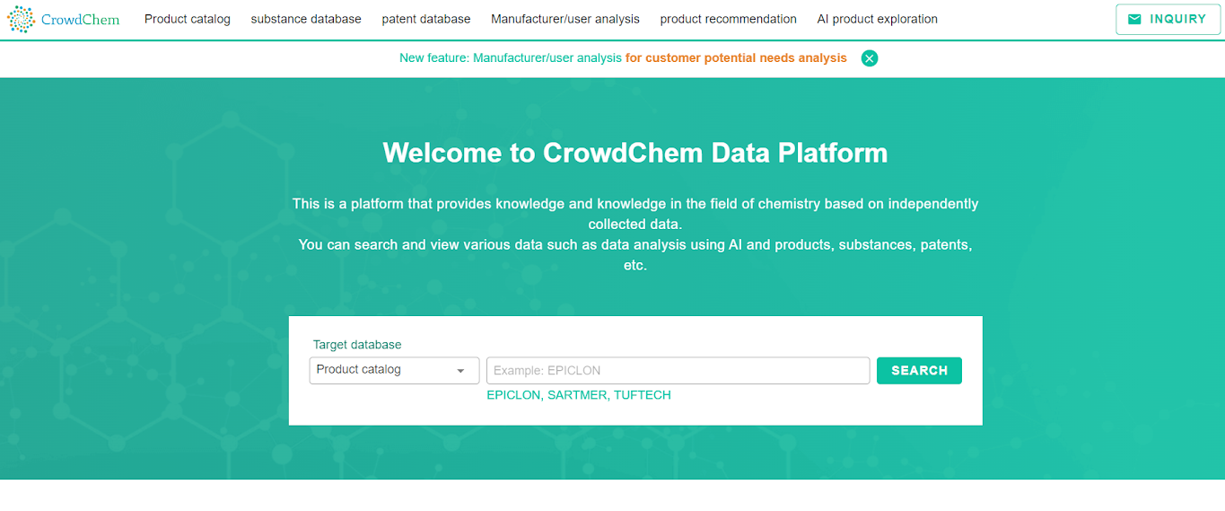 株式会社CrowdChemは化学産業に関するさまざまな情報を収集し、ご活用いただくことにより、皆様のモノづくりを支援致します。