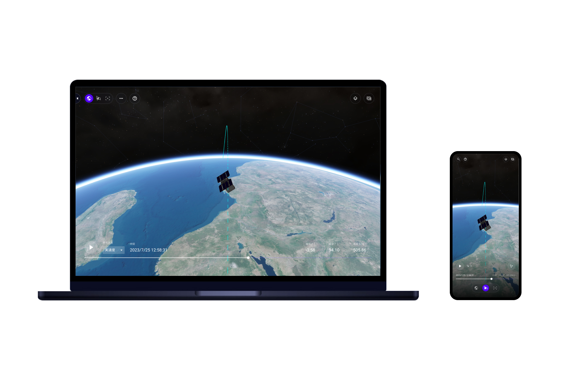 「EYEコネクト」は、『EYE』の今後の軌道を予測し、実際に『EYE』が見る宇宙の景色を体験できるWebアプリケーションです。2024年1月から提供しているパソコン環境に加え、スマートフォンからのご利用にも対応しました。より幅広い年代の方に、日常の中で気軽に「EYEコネクト」を開き、宇宙を飛び回る『EYE』の存在を感じていただきながら、宇宙とつながる世界観を楽しんでいただけます。
