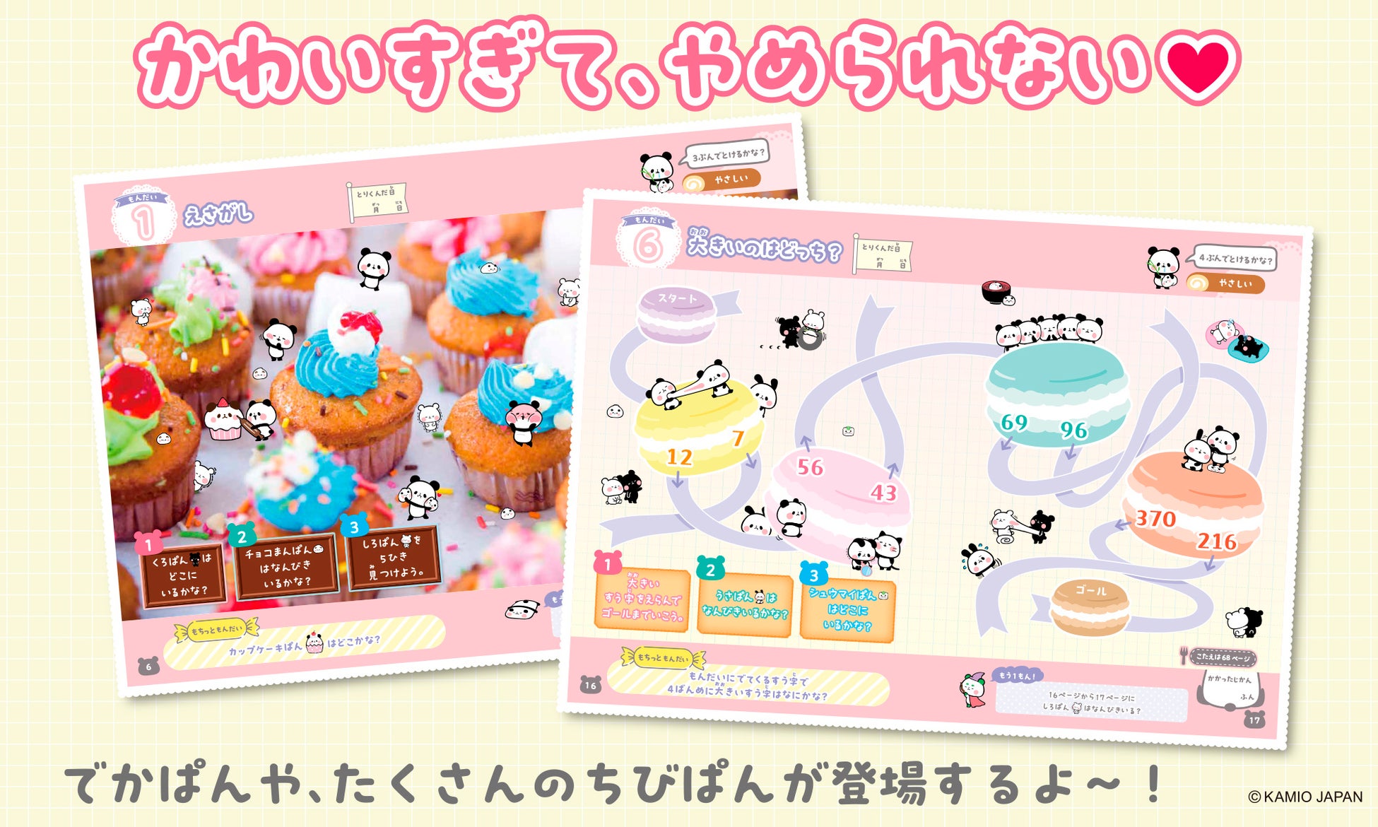 もちもちぱんだのキャラクターが沢山登場します。あまりのかわいさに、没頭しずぎて、やめられない‥!?お子様も楽しくすらすら進めることができます。