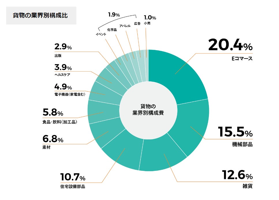 寄託貨物を分析したところ、「Eコマース」、「機械部品」、「雑貨」、「住宅設備部品」の比率が高くなりました。「Eコマース」の多くはECモールに納品する前の中継倉庫としてのニーズ、「機械部品」や「電子機器」は取り扱いアイテム数の増加による自社スペース不足の補完ニーズ、「住宅設備部品」は工期の変更に伴う突発的な貨物の一時保管ニーズが中心で、貨物種によって異なるニーズが明らかになっています。輸入貨物はデバンニングやラベル貼り等の流通加工に対するニーズも強く、オプションサービスとしての提供を開始しています。