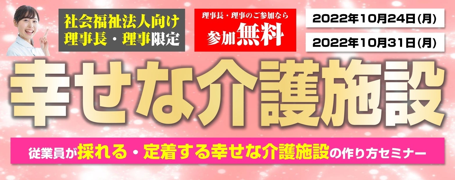 そしてこの度、介護施設を運営する社会福祉法人の理事長・理事限定で、『職員が採れる・定着する幸せな介護施設の作り方セミナー』を開催することにいたしました。