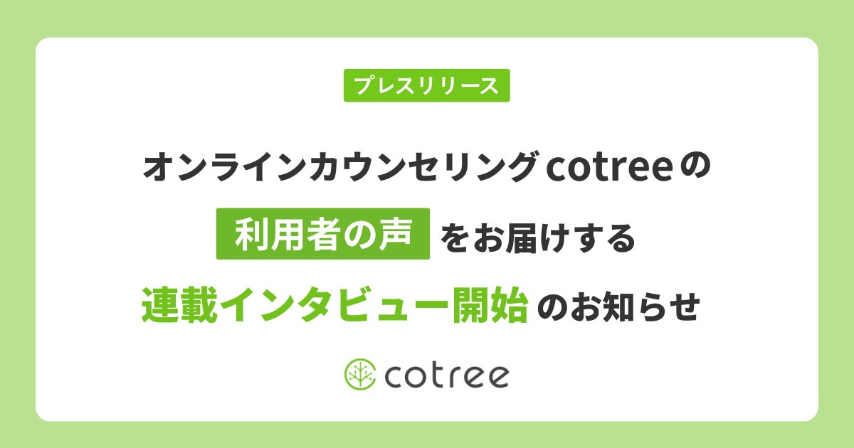 オンラインカウンセリング・コーチングの「cotree」を展開する株式会社cotree(本社:東京都中央区、代表取締役:西岡 恵子、以下cotree)は、十人十色な利用者様の活用方法をお伺いするインタビュー「わたしにとってのcotree」をお届けする連載を開始しました。