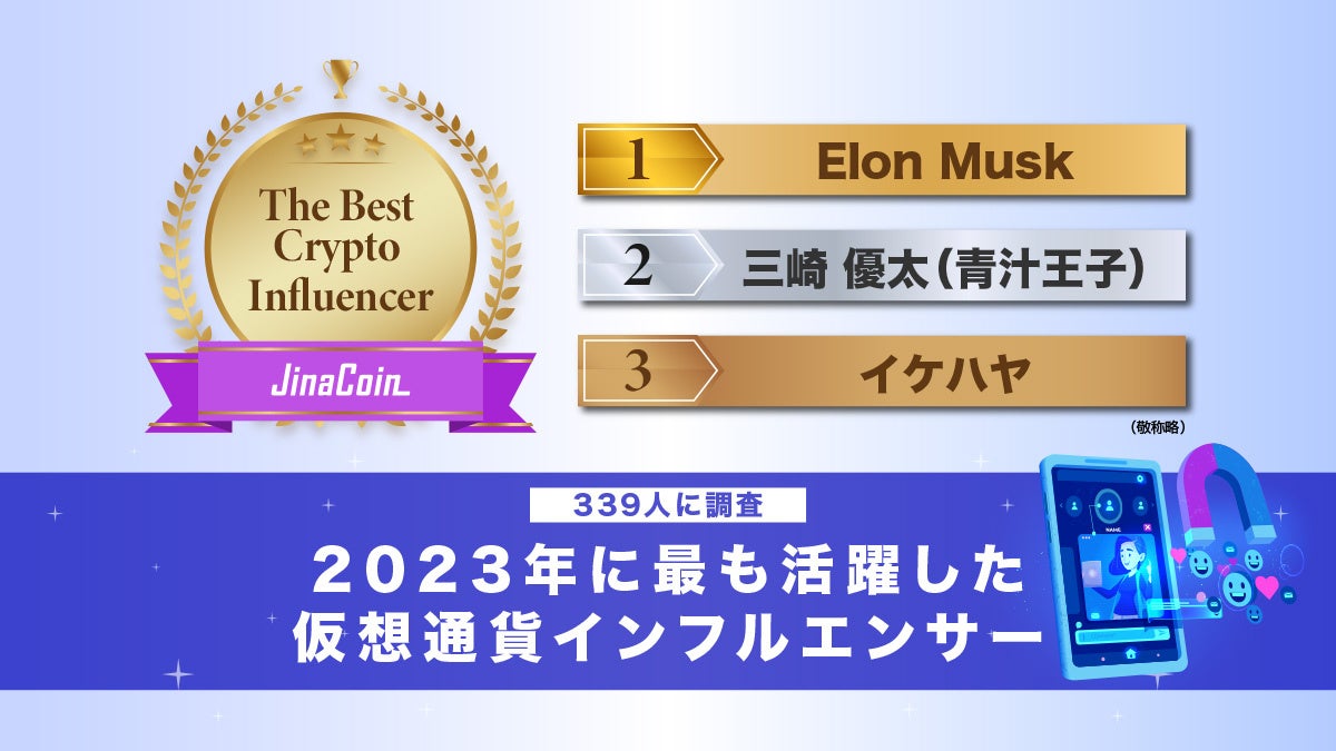株式会社jaybe(本社:香川県高松市)が運営する暗号資産(仮想通貨 ※以下、「仮想通貨」と称する)メディア「JinaCoin(ジナコイン)」は28日、2023年に活躍した仮想通貨取引所やインフルエンサー、ブロックチェーンゲーム(NFTゲーム)などを称える賞「JinaCoin AWARDS in 2023(ジナコイン・アワード 2023)」を発表しました。