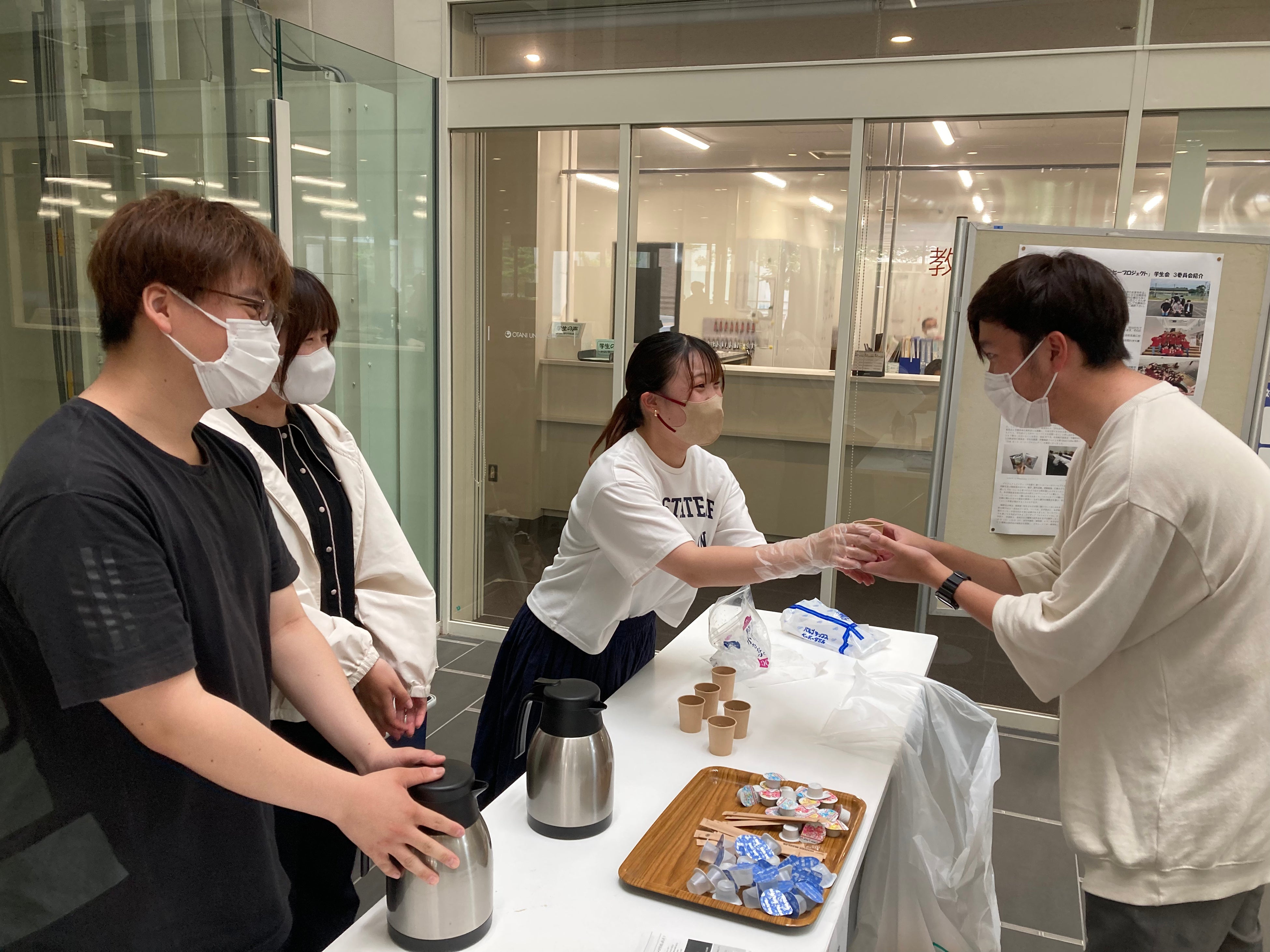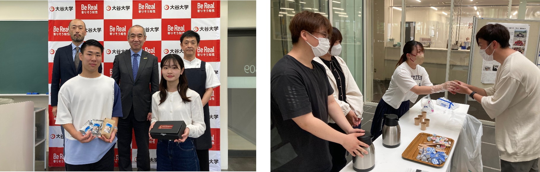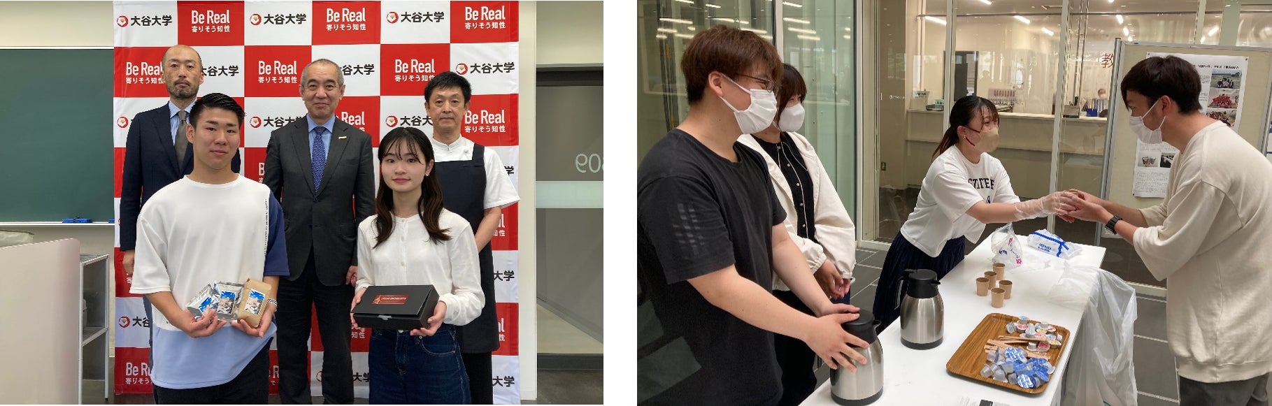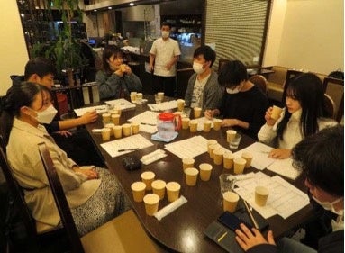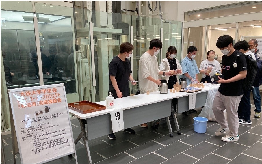 販売より10年が経過し、ブレンドコーヒーのリニューアルを検討するにあたり、大谷大学学生会による大学新オリジナルコーヒー制作プロジェクト「大谷 ほっと コーヒープロジェクト」が2022年9月に始動しました。本プロジェクトは、「本学学生、新入生、受験生及び関係者の方々に、コロナ禍で様々な制限を強いられる中、勉学、課外活動、受験勉強、仕事などで疲れた際にコーヒーを通して『ほっと』ひと息つけるようなひと時を楽しんでもらいたい」という想いのもと実施しました。また、試作会や試飲会、完成品・商品名の投票会など、本学関係者全員が本プロジェクトに携わり、大谷大学が一体となってオリジナルコーヒー制作に取り組みました。(写真:試飲会の様子)