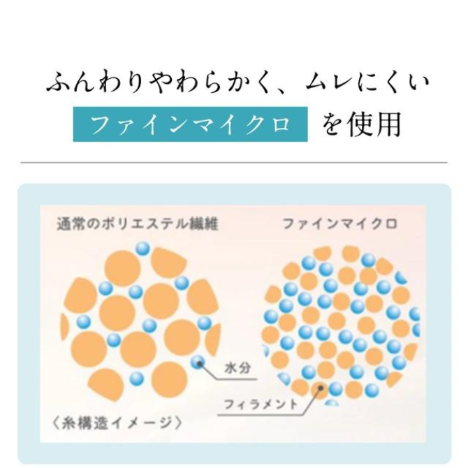 ファインマイクロの繊維は、通常のポリエステル繊維と比べて吸水性に優れています。