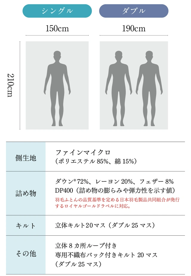 「コンディションをサポートする羽毛ふとん」の商品仕様