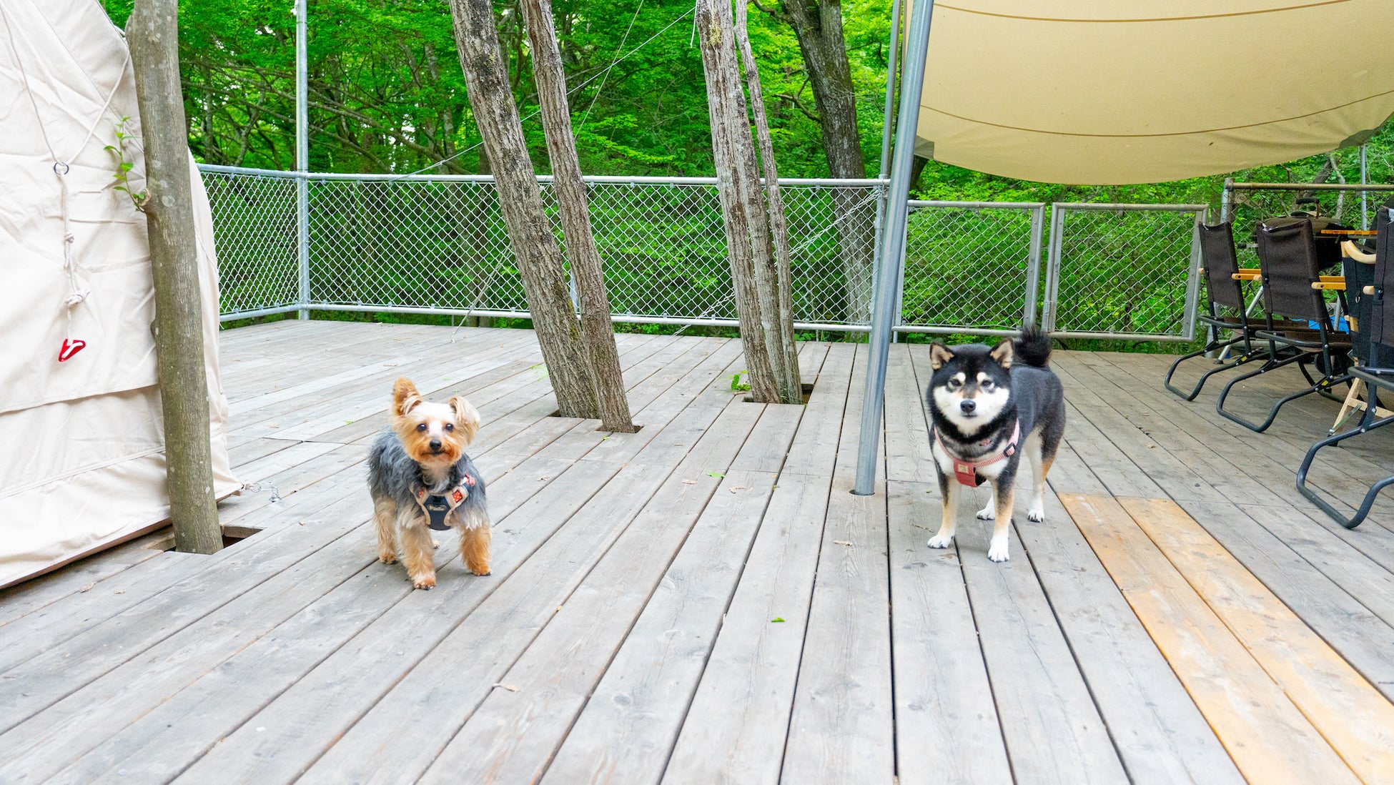 ウッドデッキの上は、フェンスで覆われているためノーリードでワンちゃんがのびのび過ごすことが可能です。