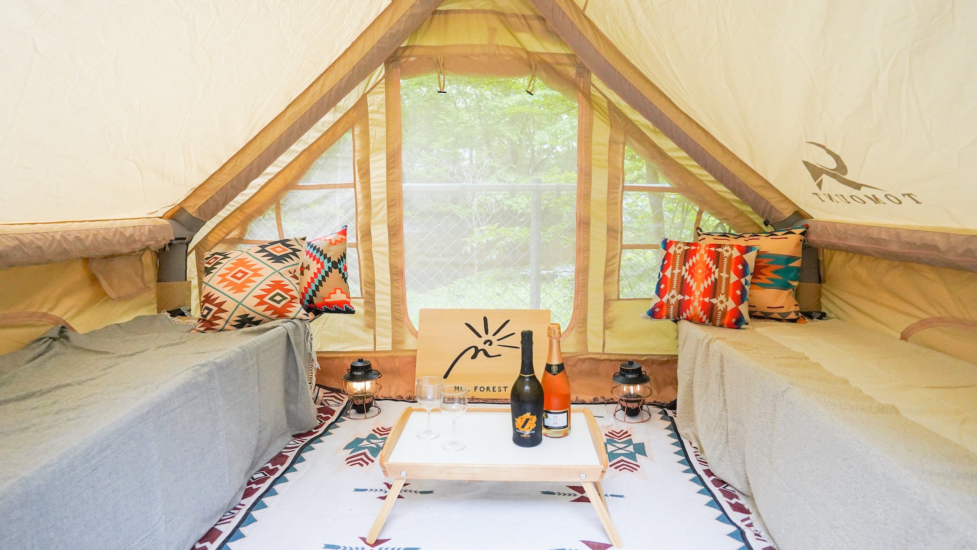 「森の中で楽しむ北欧の休日」をコンセプトに、那須高原に昨年8月に誕生したプライベートキャンプ&サウナ施設『Mr.Forest(ミスターフォレスト)』ですが、宿泊者の方から「キャンプに来たからにはテントの中でも楽しく快適に過ごしたい」というお声をいただき、既存のテントよりも大きく広々としたテントの貸出を開始しました。