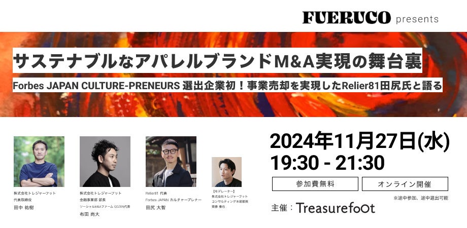 Forbes JAPAN カルチャープレナー30 (2023) 受賞のアップサイクルブランドRelier81のM&AをGOZENがアレンジ