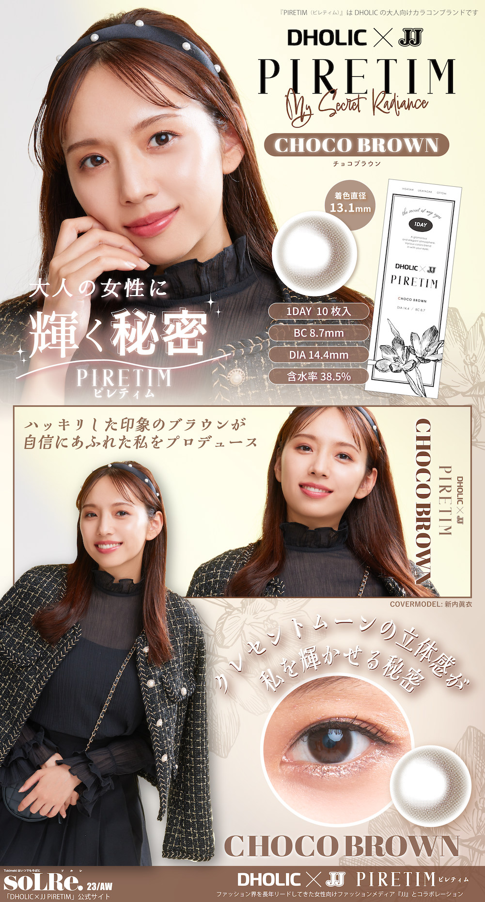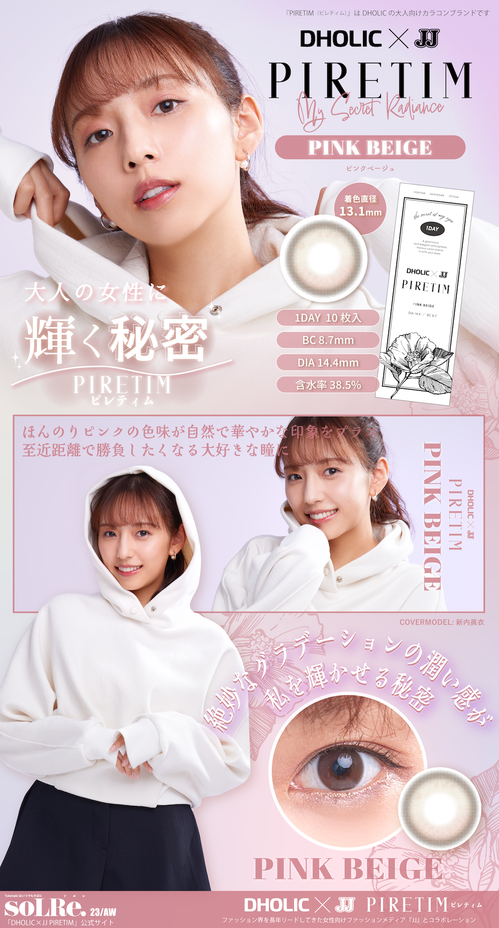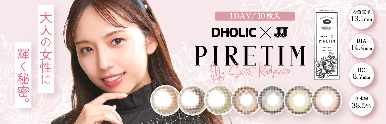 『PIRETIM』は、「私が輝く秘密」をコンセプトに『DHOLIC』が立ち上げた大人向けカラコンブランド。ファッション界を長年リードしてきた女性ファッションメディア『JJ』とコラボし、幅広い年代、特に大人の女性が自然に盛れるカラコンを楽しんでもらいたいという想いのもと制作。幅広い女性の声をリサーチした結果、「不自然にならず、程よく盛れるカラコン」が誕生しました。