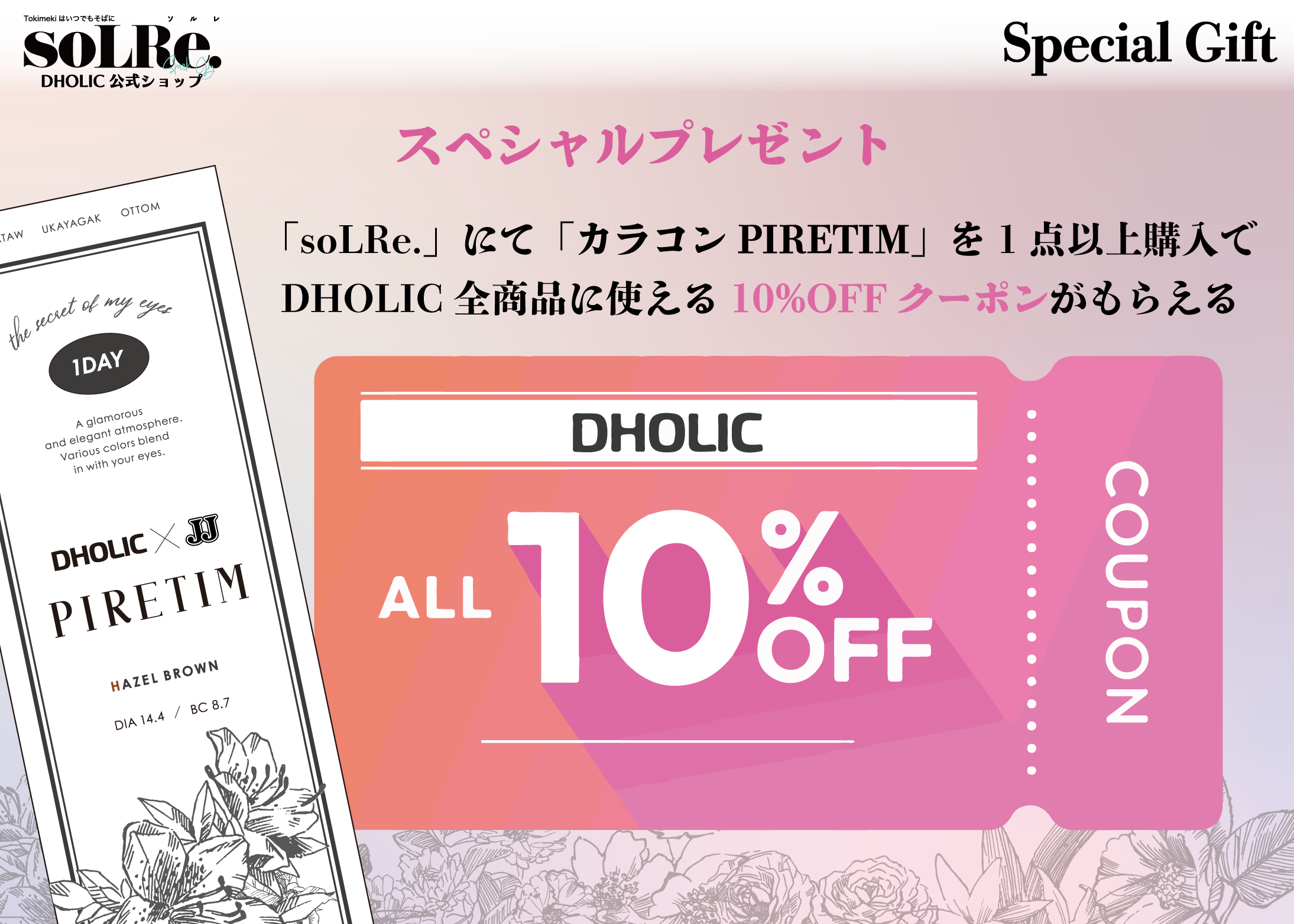 ●TOPIC② DHOLIC公式ショップ『soLRe.』で購入すると『DHOLIC』全商品に使える10%OFFクーポンがもらえる