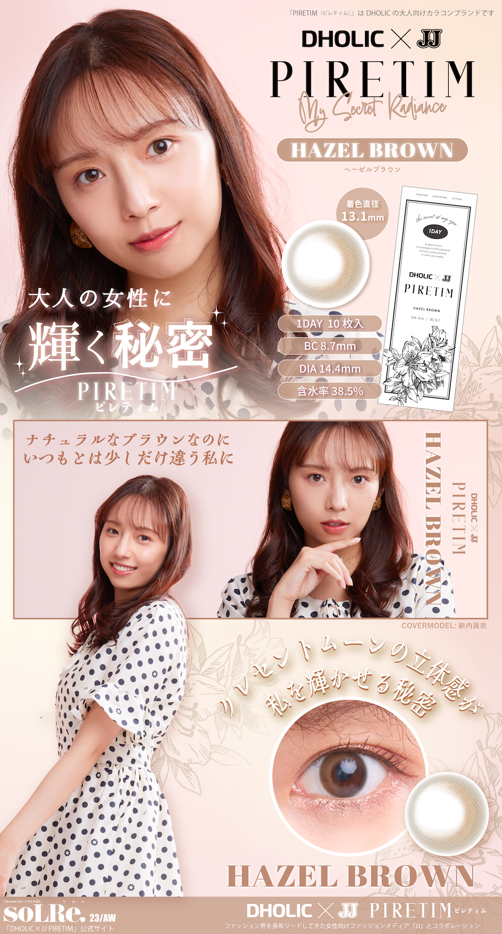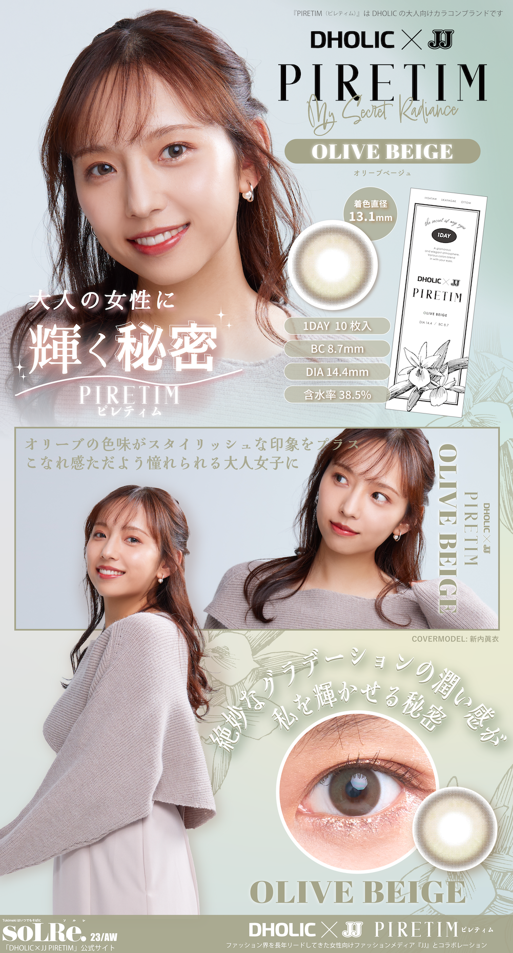 『soLRe.』では女性ファッションメディア『JJ』と連動して、『PIRETIM』を生かしたカラコンメイク&スタイルをシーズンごとに紹介。2023A/Wカバーモデルは元乃木坂46新内眞衣さん