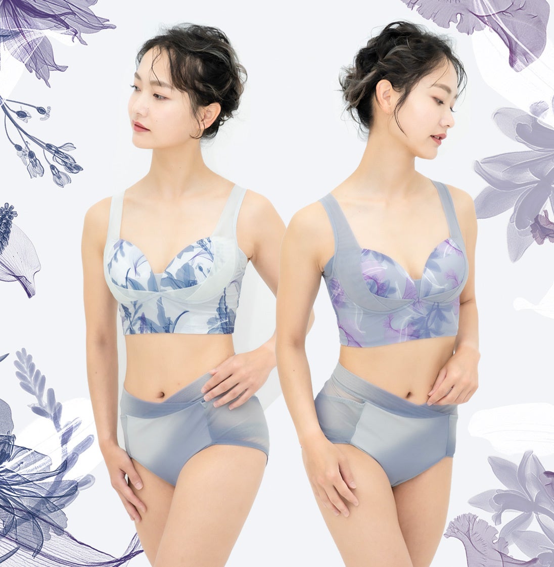 2色のブラで1つのショーツをセットアップで使えるよう、両デザインに統一感を持たせつつ、表情の違うデザインを作るため、微細な色味の調整を繰り返し行い、完成に至ることができました。
