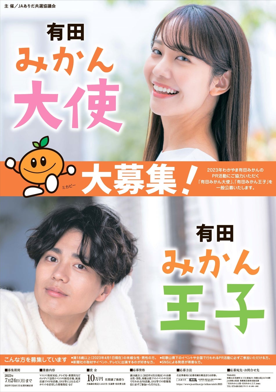 JAありだ共選協議会は「有田みかん」を広くPRして頂ける「有田みかん大使・有田みかん王子」を募集いたします。