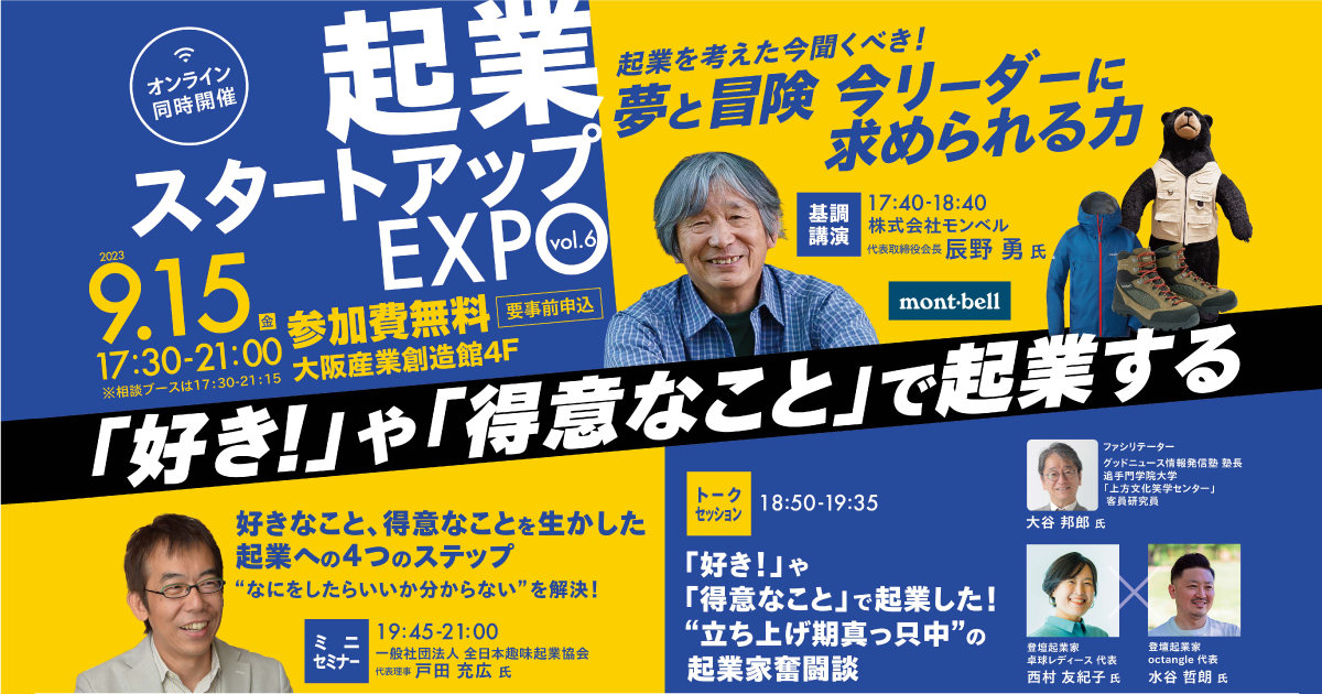 起業のヒントが詰まったイベントを無料開催!ー「好き!」や「得意なこと」で起業する!ー「起業スタートアップEXPO 2023」9月15日開催