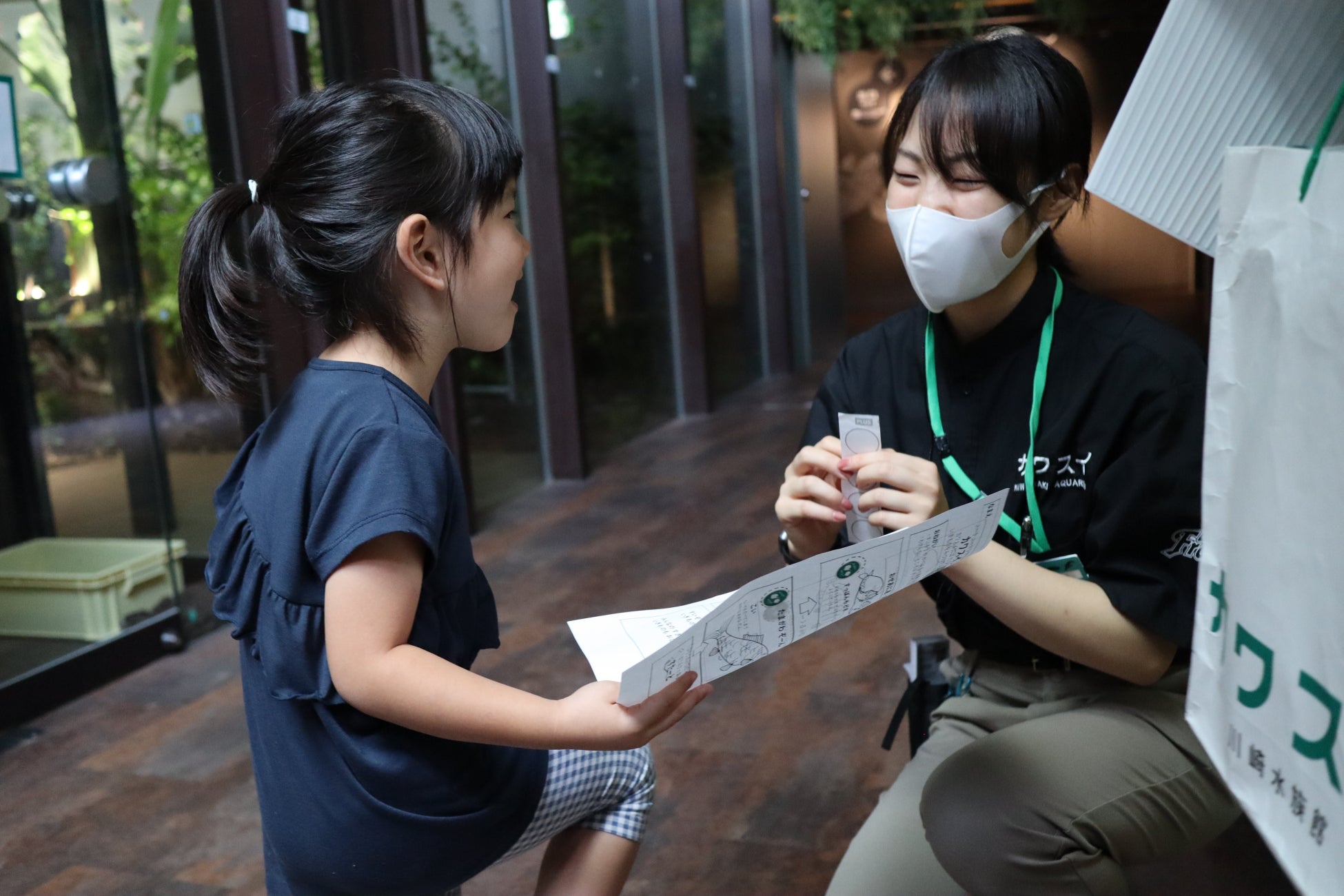 実施内容:カワスイにいる「夜行性」の生きものを探してワークシートを埋め、問題を解きながら、楽しく生きものについて学ぶことが出来ます。全問正解すると、オリジナルステッカーをプレゼントいたします。