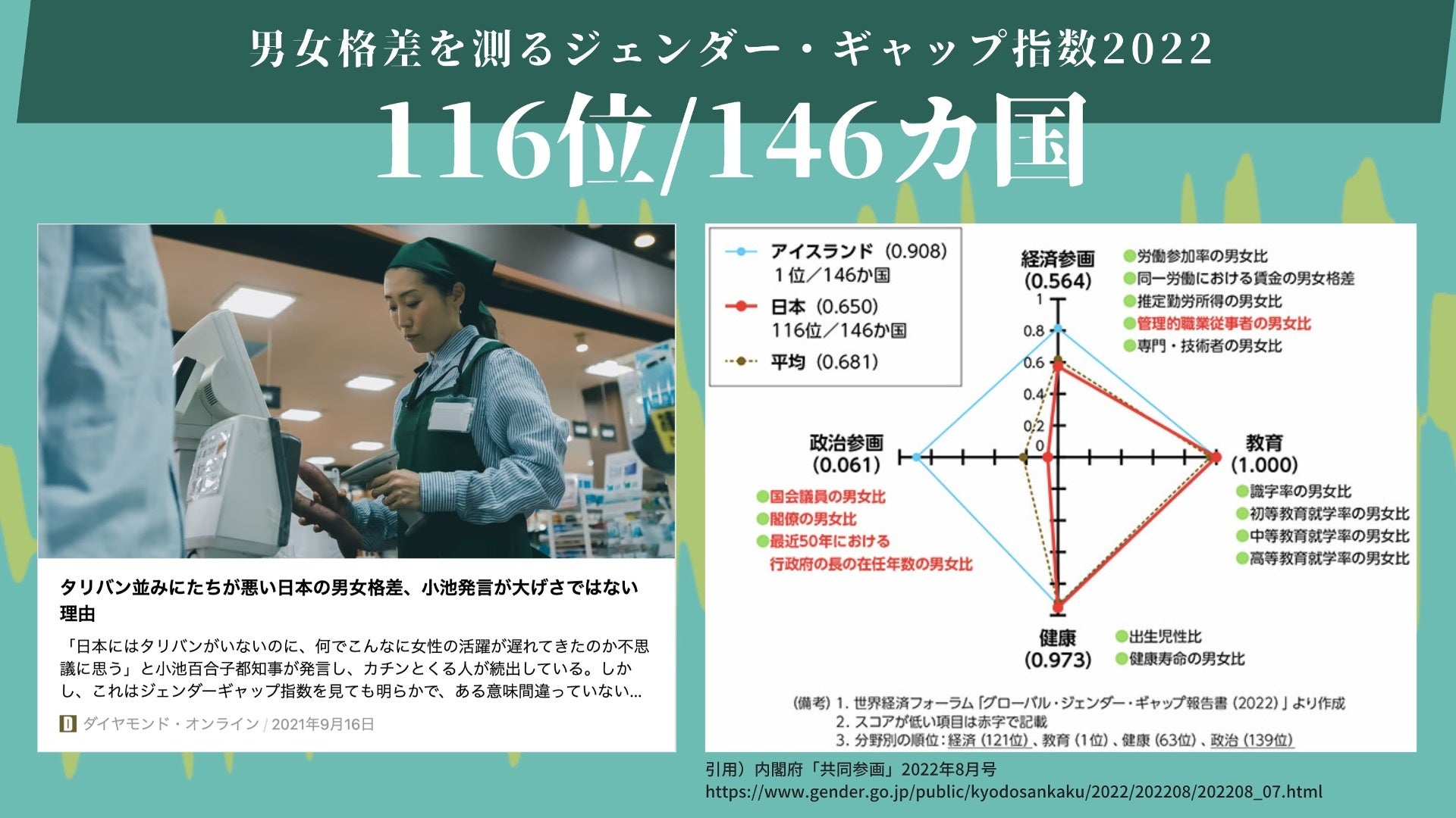 「女性は男性を支えて、男性が政治・経済を成長させていく、、、それができない状況になってきているのに、未だに今だに男性が中心となっている状況を少しずつ変えていかなければならない。」