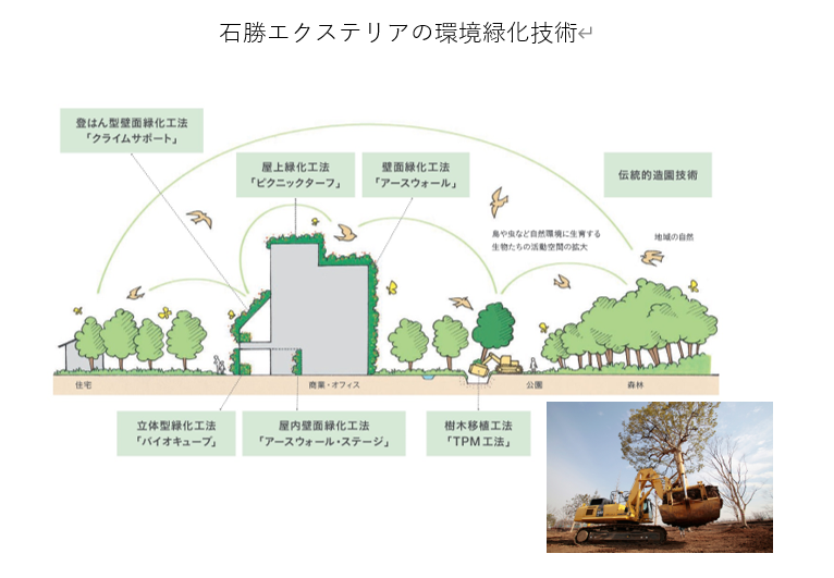 石勝エクステリアは、東急不動産ホールディングスグループの中で、長年の造園・緑化事業での技術・ノウハウに裏付けられた環境貢献をステークホルダーの皆さまに提供できる、国内総合不動産業の中でも珍しい、独自性を訴求できる大きな強みを持つ会社です。事業におけるネイチャーポジティブへの貢献第2弾として、独自の環境緑化技術を活かし、今後もグループの力を結集して環境課題解決を推進していきます。