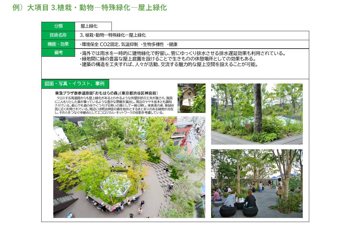 東急不動産ホールディングス株式会社(本社:東京都渋谷区、代表取締役社長:西川 弘典、以下「東急不動産ホールディングス」)、株式会社石勝エクステリア(本社:東京都世田谷区、社長:合間 功、以下「石勝エクステリア」)、東急不動産株式会社(本社:東京都渋谷区、社長:星野 浩明、以下「東急不動産」)は、石勝エクステリアがこれまで50年以上に渡って造園・緑化事業で推進してきた環境緑化技術・ノウハウを、自然環境の多様な効果を活用していくというグリーンインフラ(注1)の考え方のもと再構成し、お客様をはじめ様々なステークホルダーの皆さまへ展開できるグリーンインフラメニュー(以下「メニュー」)を策定しましたのでお知らせいたします。石勝エクステリアは、このメニューを、ステークホルダーのグリーンインフラ実現の取り組みを促進するシステム「Greentect」(グリーンテクト)として、あらゆる事業に活用する、グリーンインフラ事業を開始いたします。グリーンインフラに関するメニューを一覧としてまとめ、事業に活用し、サービスとして展開するのは国内の造園業界では初めてとなります。