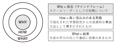ハッティはスクールリーダーのマインドフレームを,行動やその方法のWhy(なぜ)であると述べています。