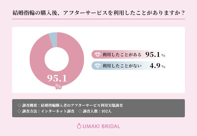95.1%が結婚指輪購入後にアフターサービスを利用したと回答