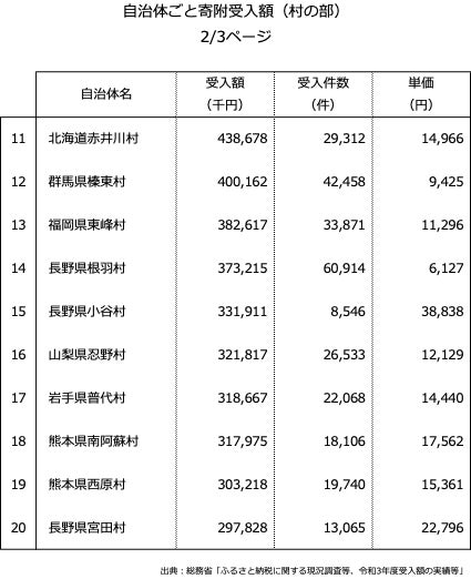 「令和3年度ふるさと納税寄付額を「村」別に分析」の主な結果