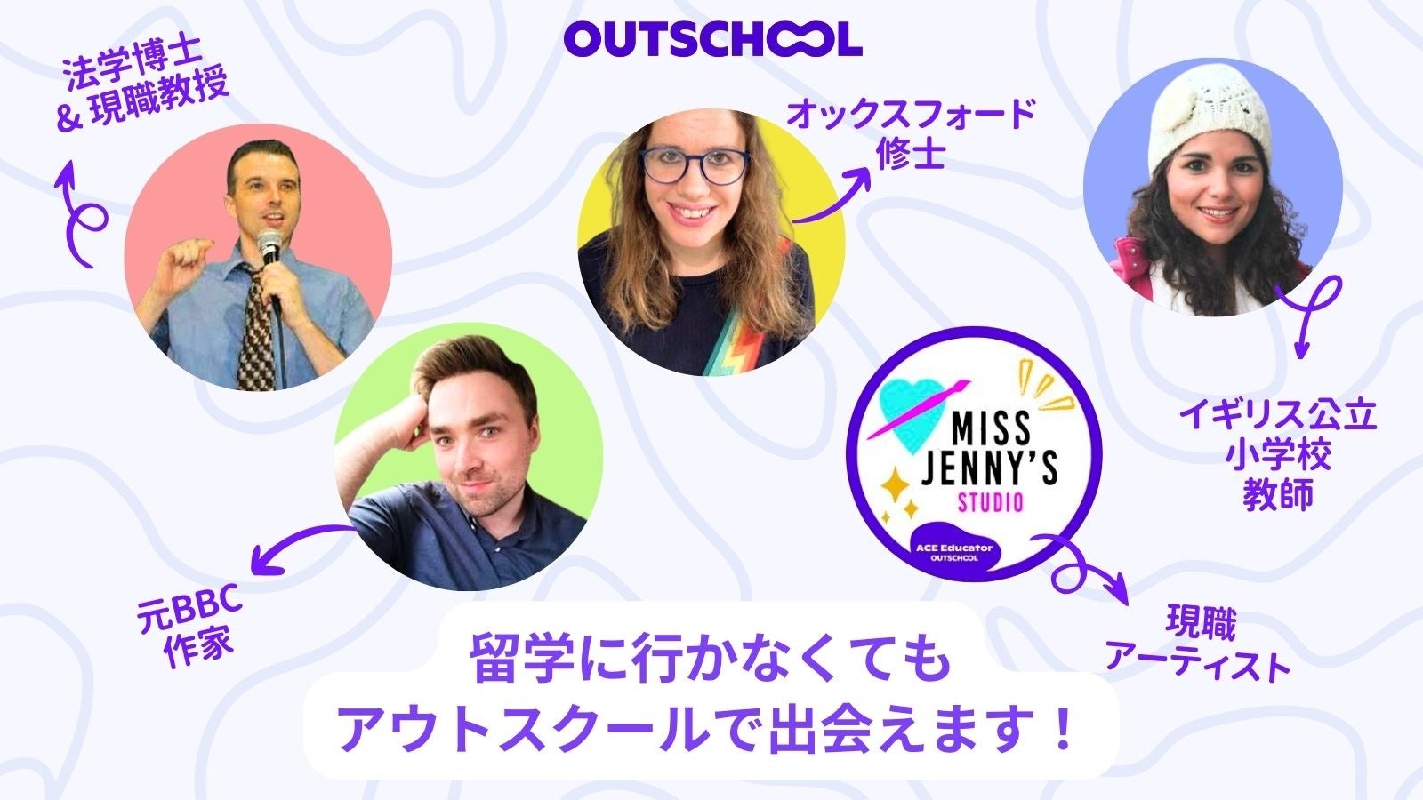 アウトスクール (https://outschool.com/ja/) は全世界の3-18歳の学習者を対象とした、オンライン学習プラットフォームであり、米国・カナダ・英国といった英語圏のネイティブ講師が1万人以上在籍。韓国、日本、台湾、香港など東アジアの学生にとって、海外に物理的な留学をすることなく、オンラインで完全な英語環境を享受でき、英米の現地ネイティブの子供達が実際に学ぶカリキュラムに沿って英語やSTEMその他アカデミック科目以外にも、バレエ、ゲーミングデザイン、料理などの具体的な興味関心をテーマとした体系的な学習経験を培うことができます。また、国内にいながら自宅で英語のイマージョンが体験できるという点でも、英語の早期教育に取り組む家庭から注目を集めています。