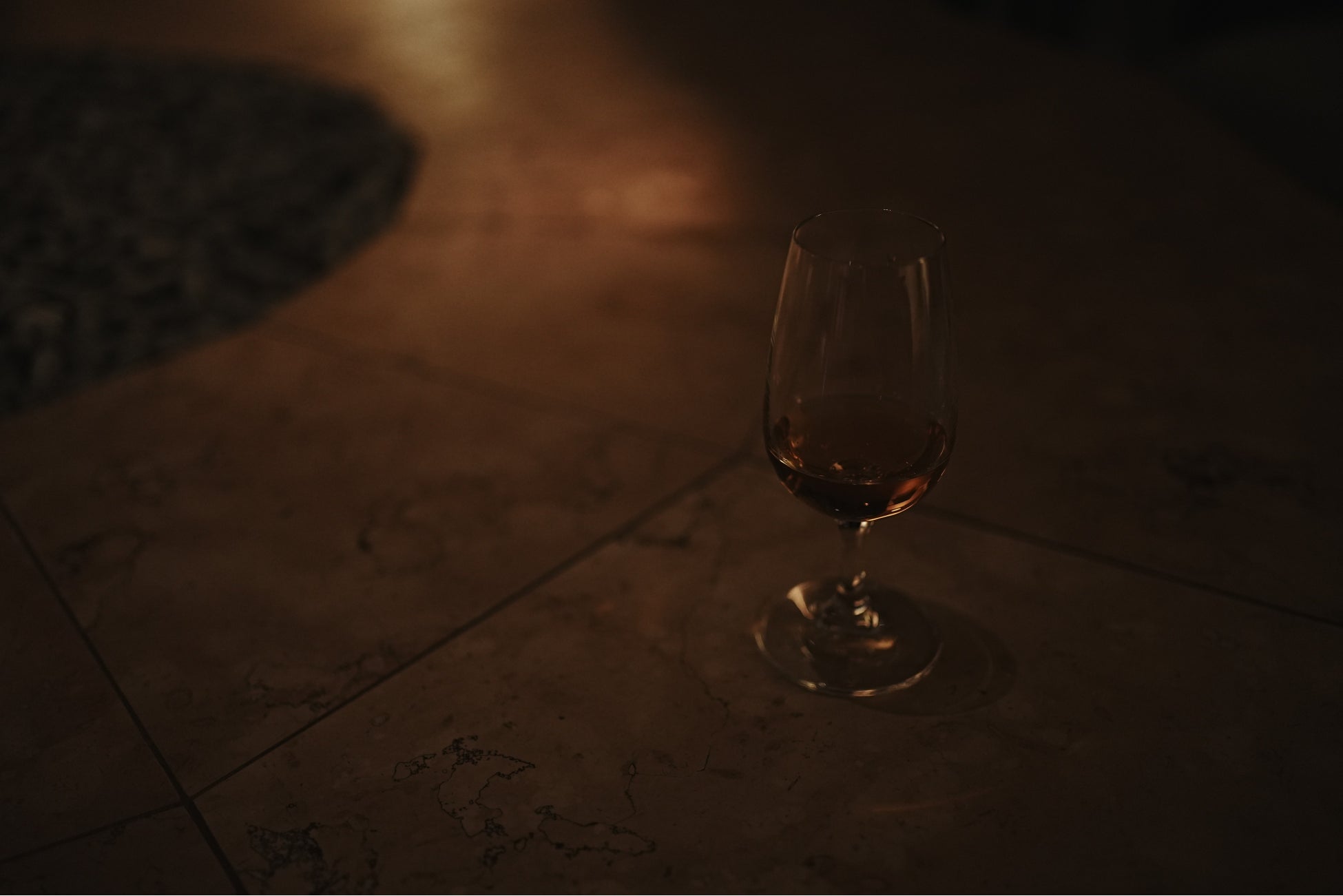 20年という時間が口の中で広がるお酒。グラスを傾けると、黄金色に輝くなめらかな液体が、とろりと軌跡を描く。圧倒的な熟成感。ナッツ、カラメル、昆布の味わいと香りが重なる。深さはあるが渋さはなく、非常に柔らかい。情報量の多さを口の中で紐解きながら、大事に飲んでいただきたいお酒です。