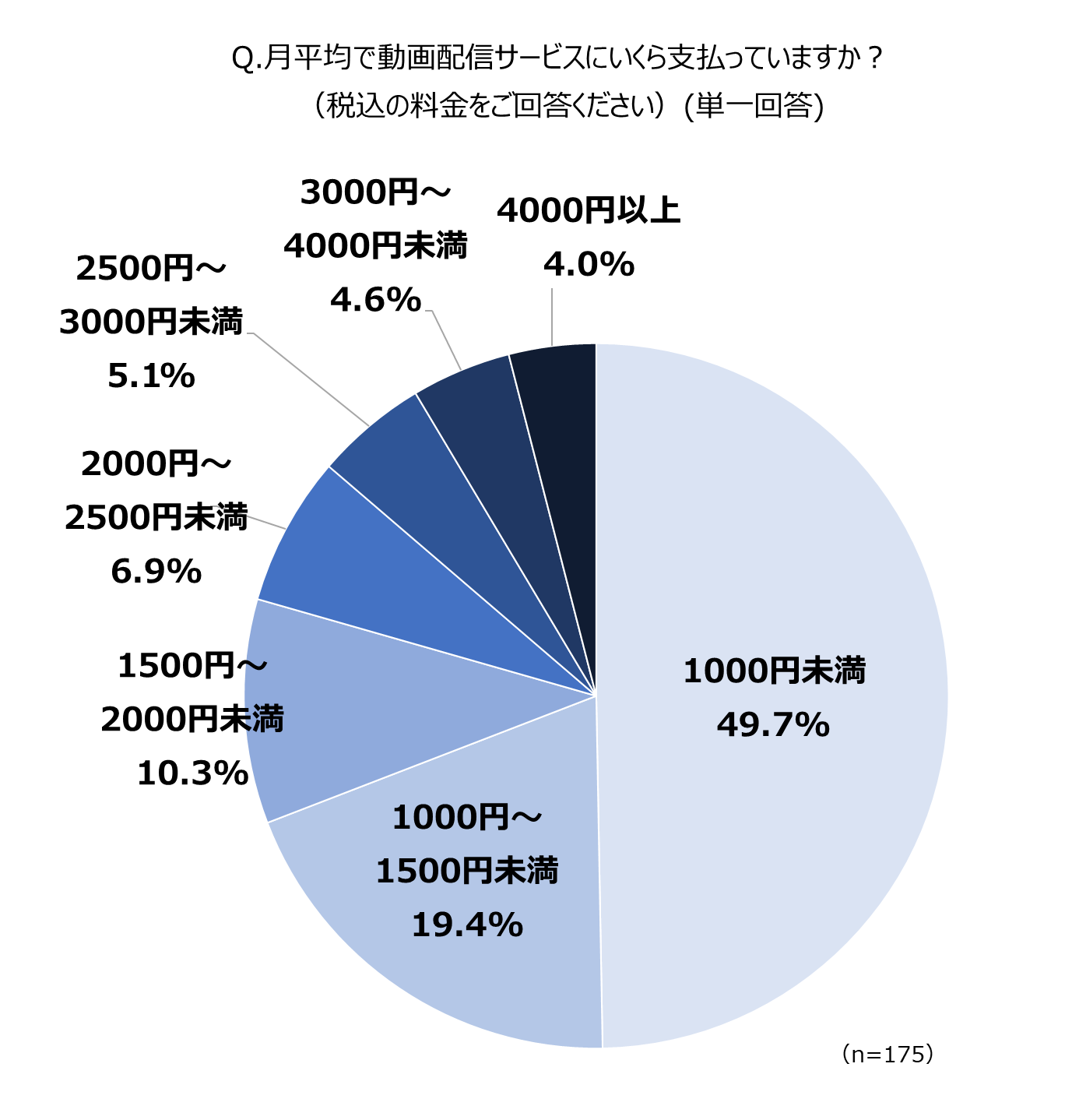 Q1.月平均で動画配信サービスにいくら支払っていますか?(税込の料金をご回答ください)(単一回答)