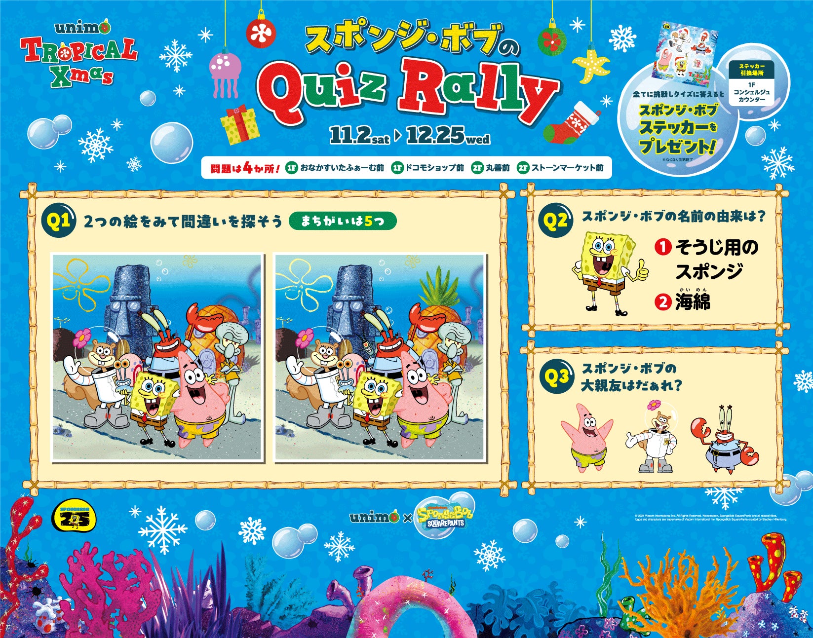 【ユニモちはら台】2024年のクリスマスは生誕25周年を迎えた『スポンジ・ボブ 』とコラボレーション!「unimo TROPICAL Xmas」を開催