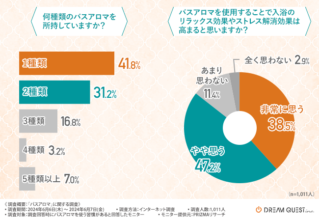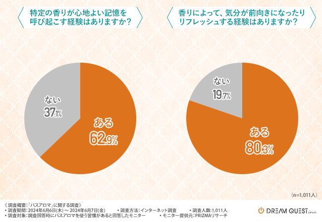 そこで今回、創業20周年を記念して新ブランド「ERIANA」(https://quccini.shop/shop/product_categories/eriana)を発売する有限会社ドリーム・クエストは、バスアロマを使う習慣がある方1,011人を対象に、「バスアロマ」に関する調査を実施しました。