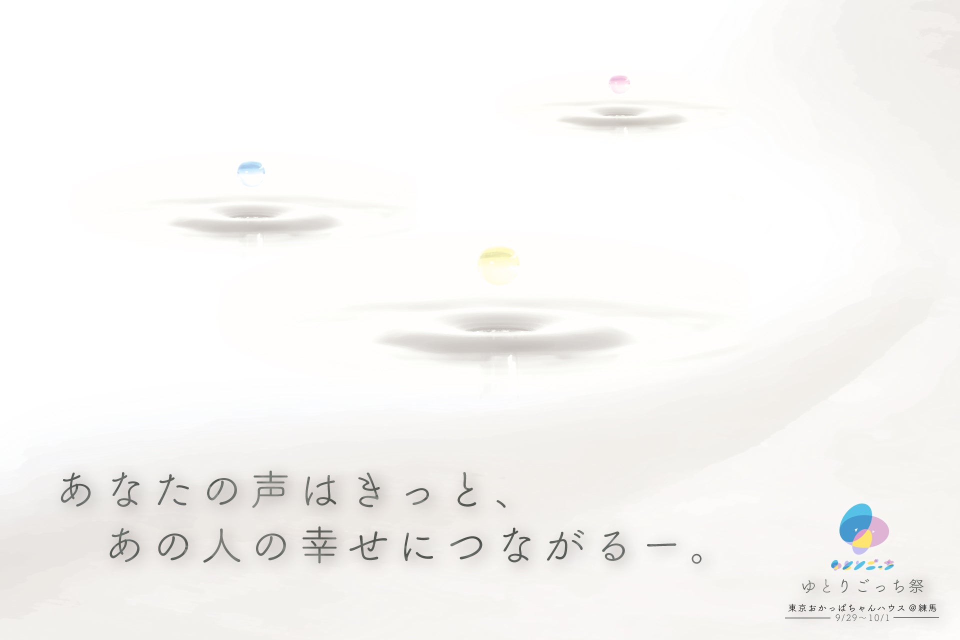 『ゆとりごっち』とは、"声の芽生え"。心のゆとりから生まれるその人らしい言葉や表現のこと。そんないろんな人のゆとりごっちが集まる場が【ゆとりごっち祭】です。着飾らない等身大の自分の声をきいて、それに身を委ねてみる空間を作り、自己表現が誰かに届くことを体験するお祭り。