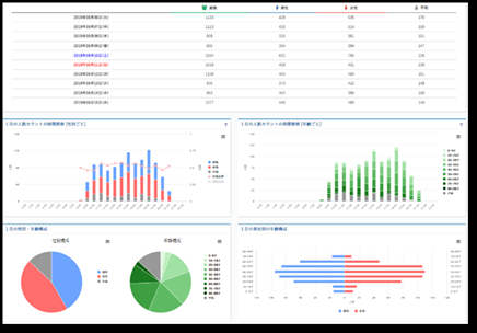 店舗別・時間別に来店客数や属性(年代、性別)構成を把握