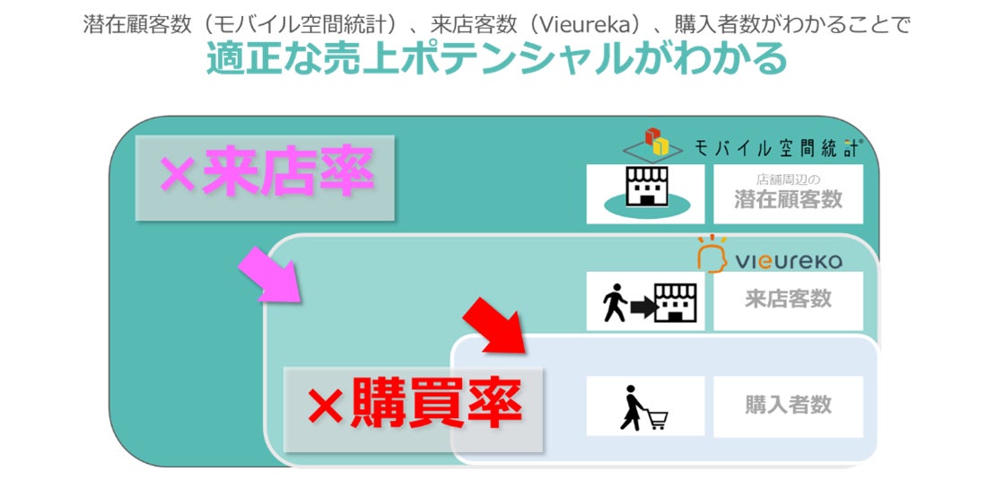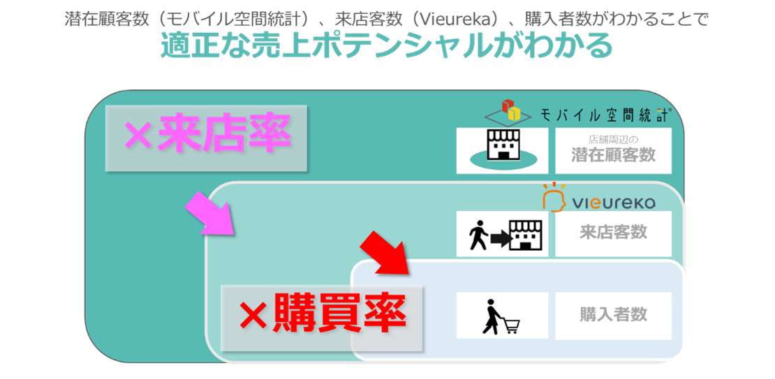 潜在顧客数に対する来店客数(=来店率)の見える化により、効果的な集客施策実施を支援