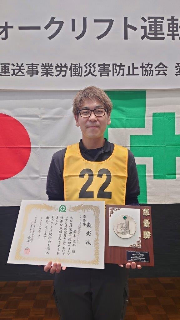 フォークリフト愛知県大会でダイセー倉庫運輸㈱鈴木圭介選手が準優勝