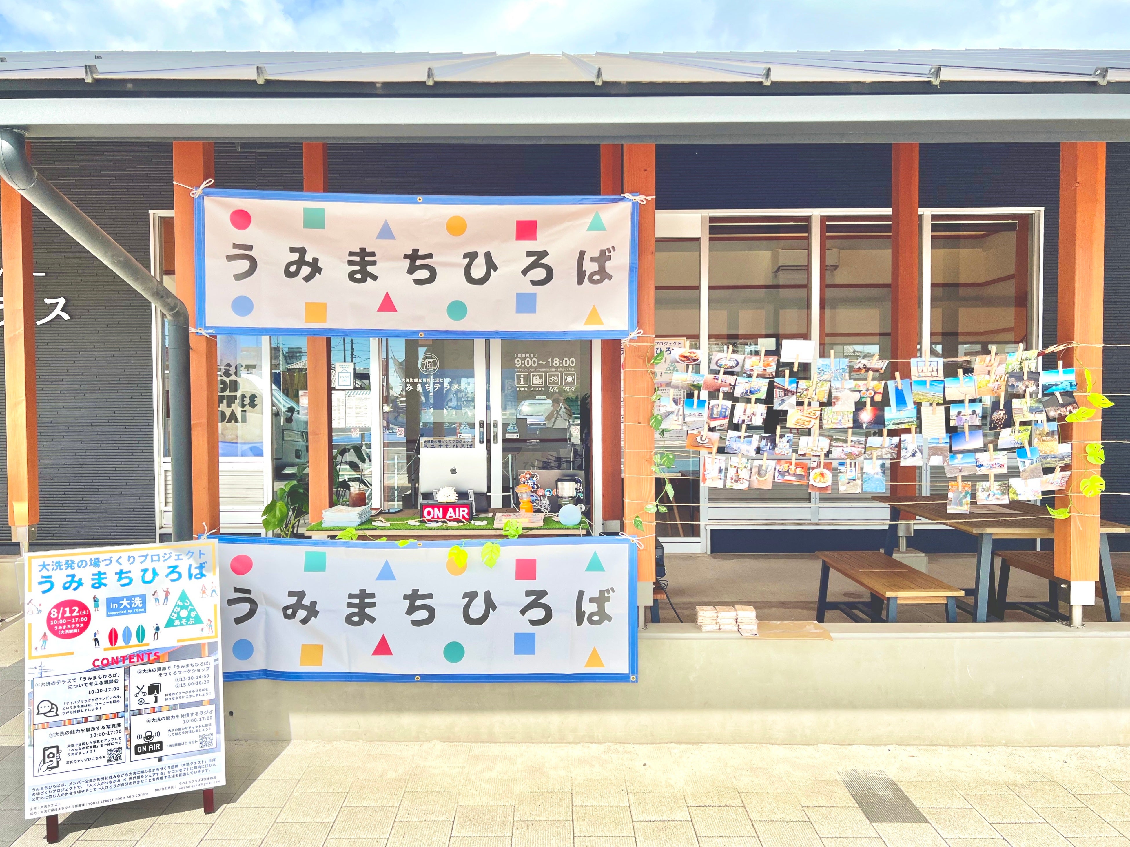 「人と人がつながる×世界観をシェアする」をコンセプトにした「うみまちひろばプロジェクト」にて、今年8月に実施したイベントで大洗の魅力溢れる写真を集めて、会場に展示しました。お祭り当日も集まった写真を展示し、来場いただいた方々と大洗の魅力についてお話ができればと思います。
