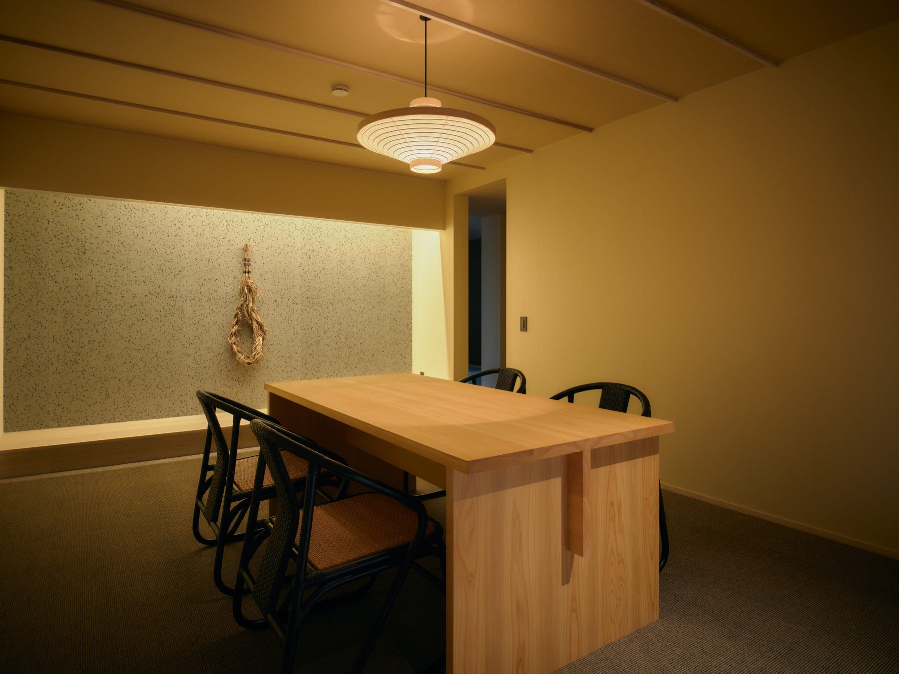 越前和紙を体感する工芸宿「SUKU」は、紙を”漉く”と”宿”の2つの意味を込めて名付けられた、和紙産地に静かに佇む3部屋のみの宿です。紙の”みみ”を模してデザインされたSUKUののれんをくぐり、16の事業者の白い和紙を貼り重ねたレセプションで出迎えます。客室は、「楮(コウゾ)」「三椏(ミツマタ)」「雁皮(ガンピ)」と和紙の原材料の名前が冠され、それぞれの客室を名前にちなんだアートワークが彩ります。和紙職人16名の和紙がふんだんに使われた壁紙や障子や提灯など、従来和紙が使われてきたものには越前和紙の歴史や技を感じてもらえます。また、照明・家具・インテリアなどは、これまでとは異なる新しい和紙の活用の仕方で表現しました。客室内のあらゆる場所で越前和紙の伝統と進化を感じることができる宿です。