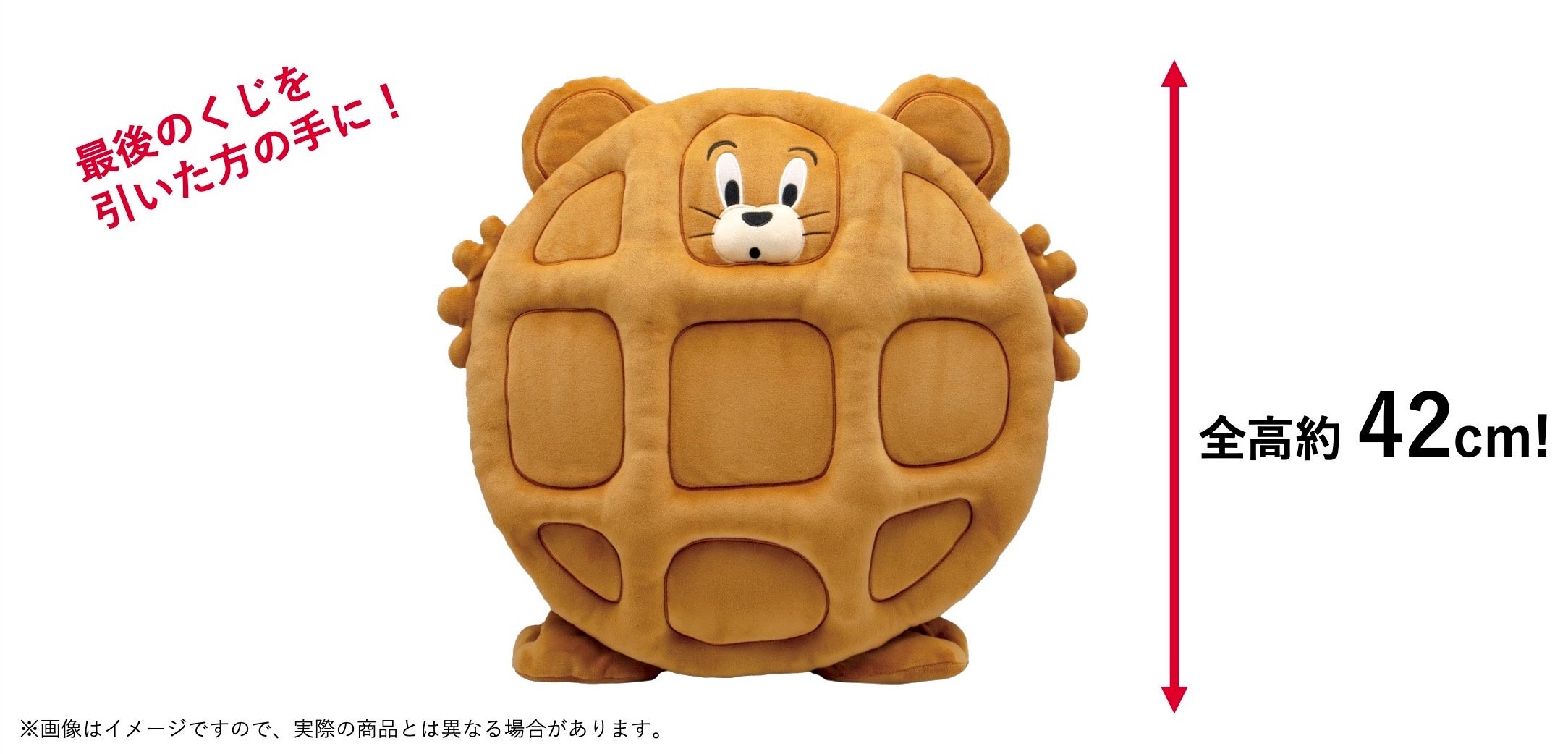 「トムとジェリー」のコミカルなシーンの中でも今回のくじで初めて⽴体化となるシーンのフィギュアや過去に⼤好評だった「第1弾」、「第2弾」の復刻フィギュアなど、わくわく楽しい景品をご⽤意いたしました。最後のくじを引いた⽅には、Last賞として「ジェリー⼤きいぬいぐるみ」が⼿に⼊ります!全⾼なんと約42センチと⼤ボリュームのぬいぐるみです!