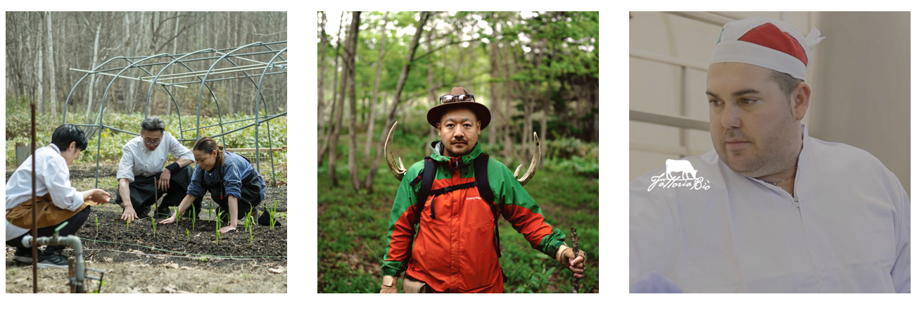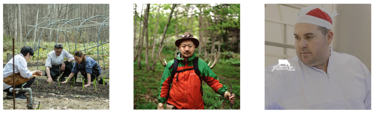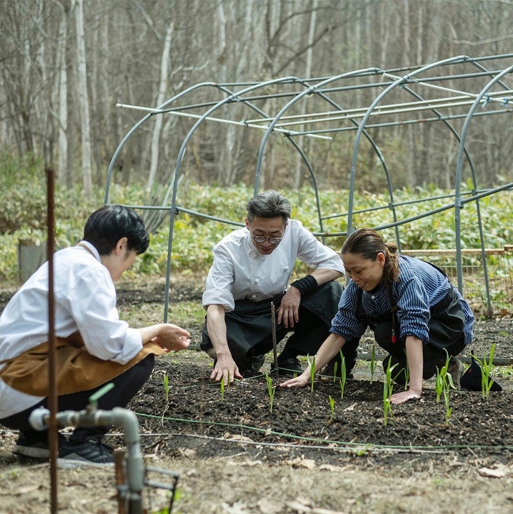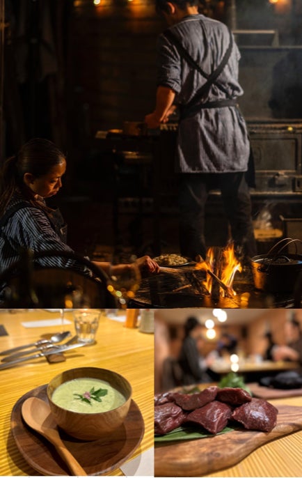 山暮らしの知恵をベースに北海道ならではの調理法と薪を操る佐々木恵と様々な有名レストランで修行を重ねた上石•山田両シェフがコラボレーション