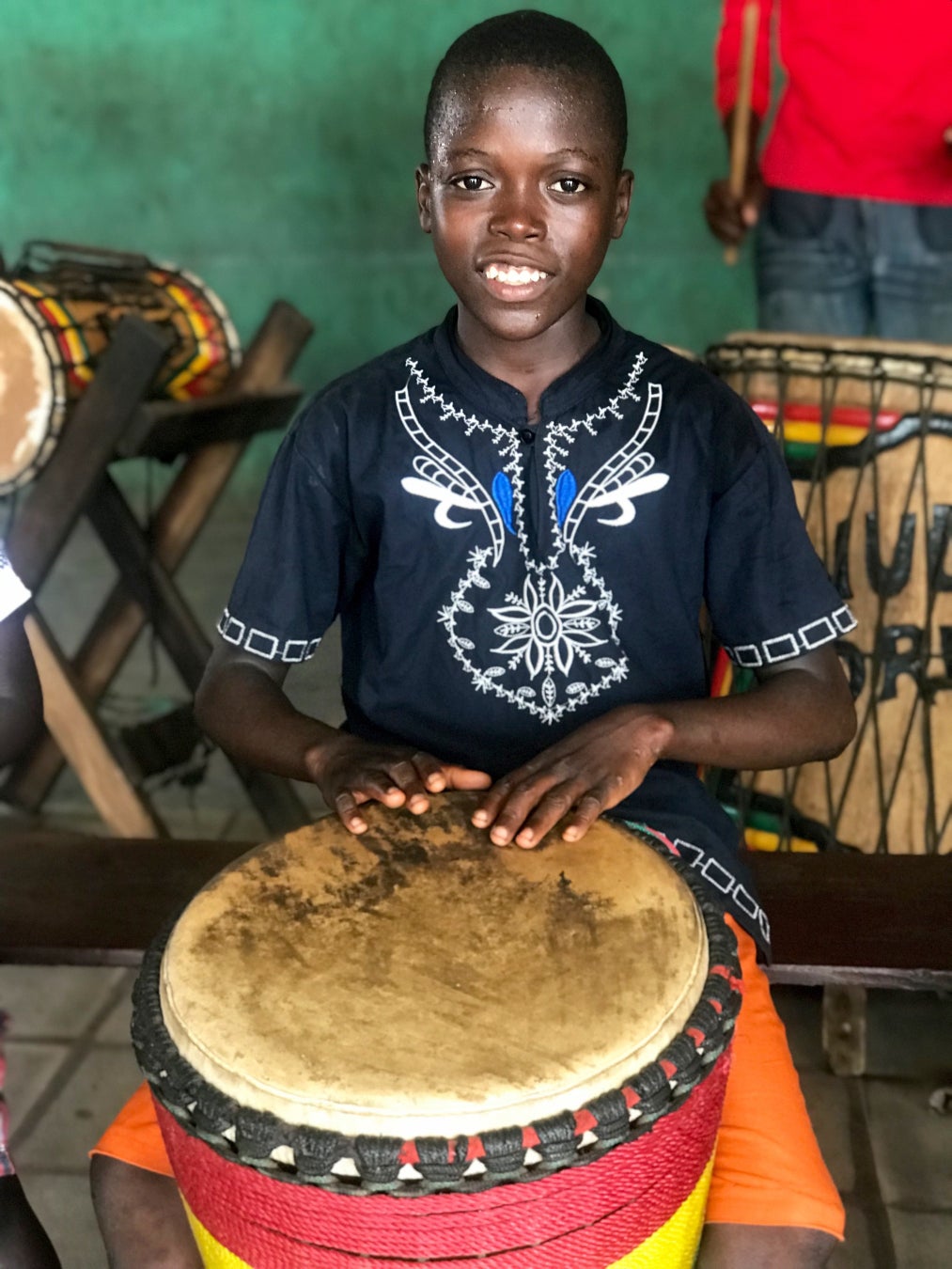 彼や同じ境遇にある子どもたちが、輝く笑顔でジャンベを叩く姿を見るたびに、私たちは音楽が彼らの夢と未来を照らす大きな力であることを実感しています。